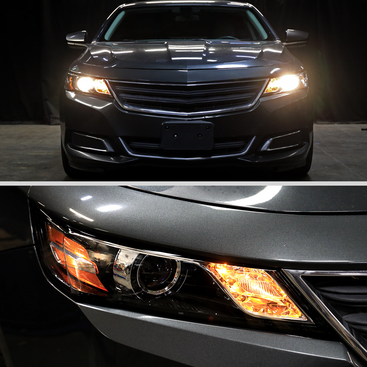 Ronnin - Fits 2014-2020 Chevy Impala Factory Replacement Halogen Projector Headlights Assembly Pair | Gloss Black | Driver Side
