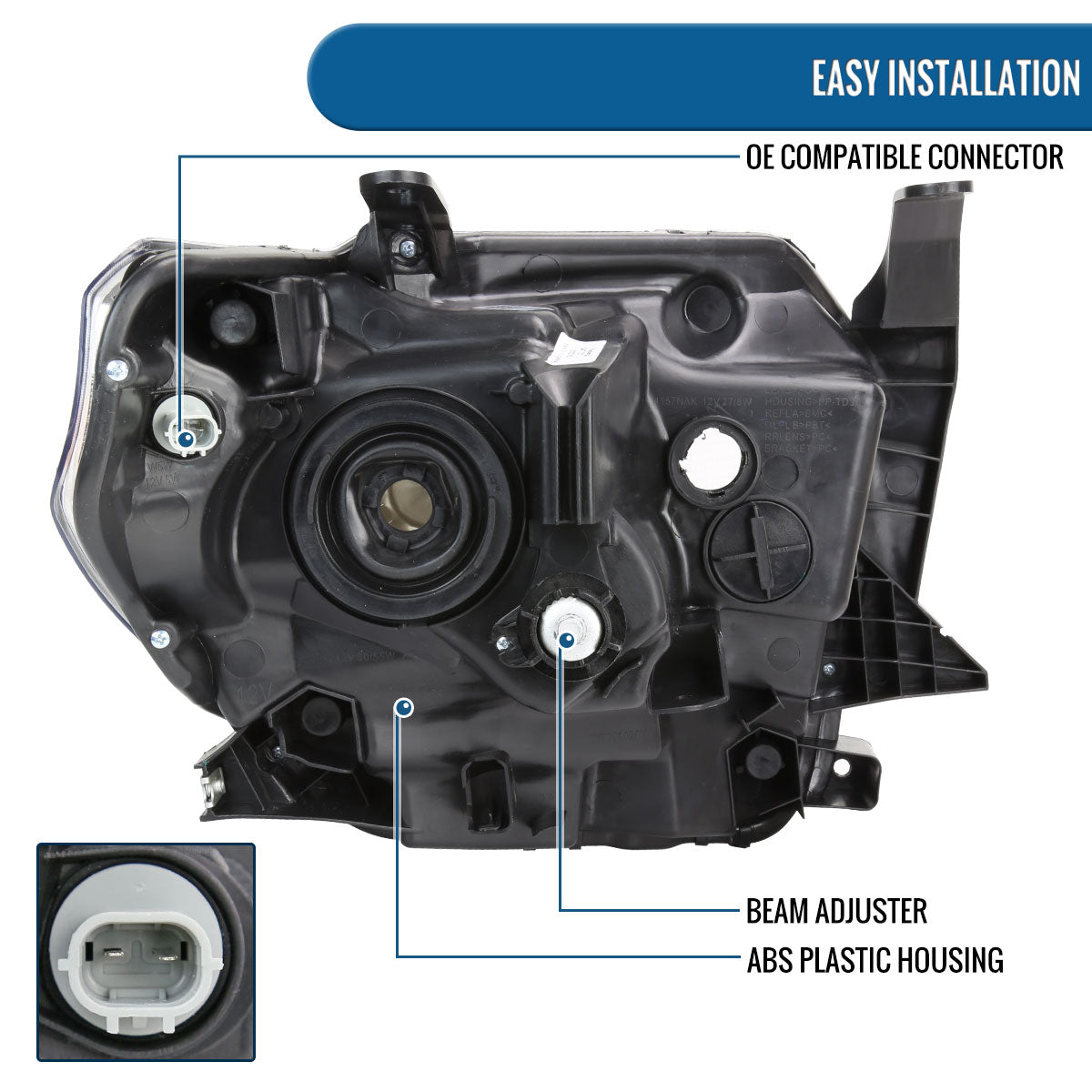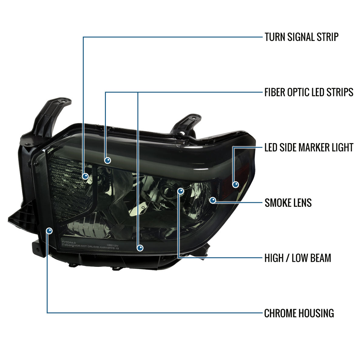 Ronnin - Fits 2014-2021 Toyota Tundra Upgraded Replacement LED Running Light Tube Halogen Headlights Assembly Pair | Smoke
