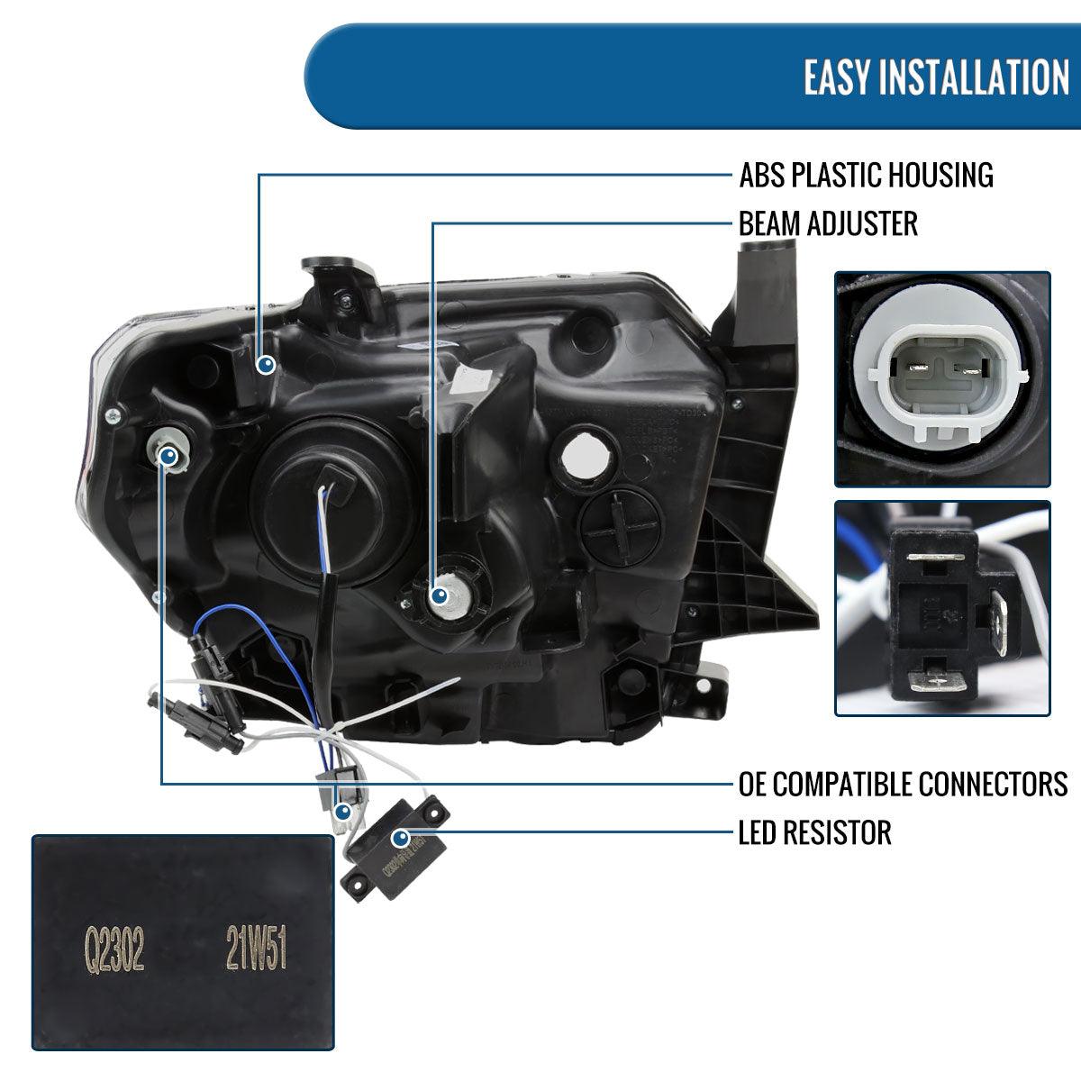 Ronnin - Fits 2014-2021 Toyota Tundra Upgraded Replacement LED Running Light Tube Halogen Projector Headlights Assembly Pair | Chrome