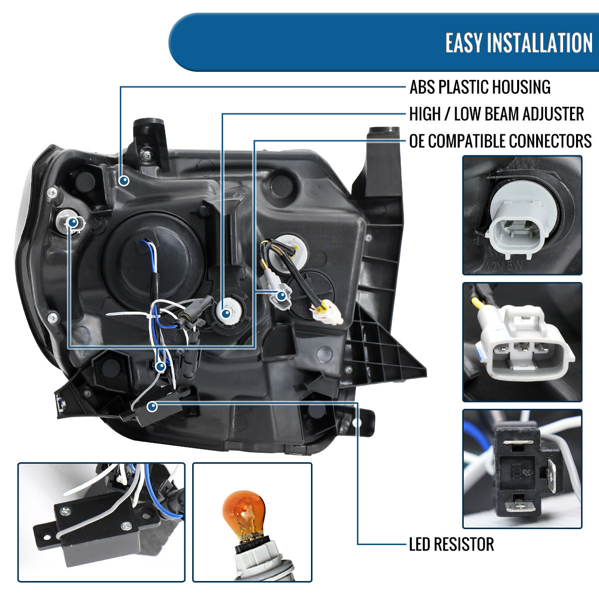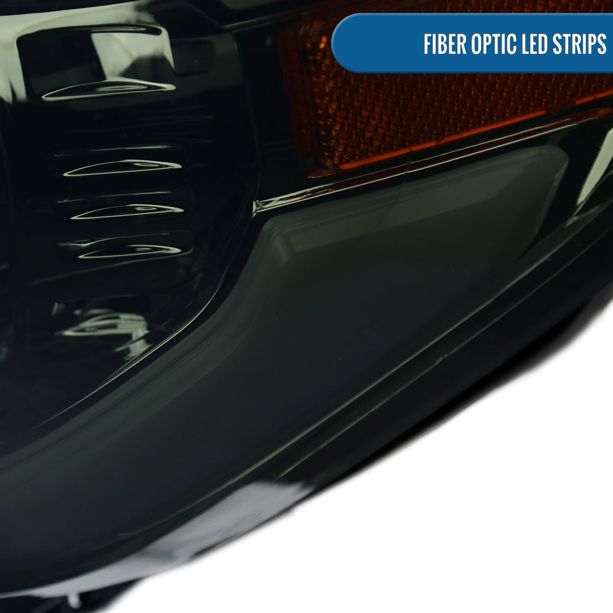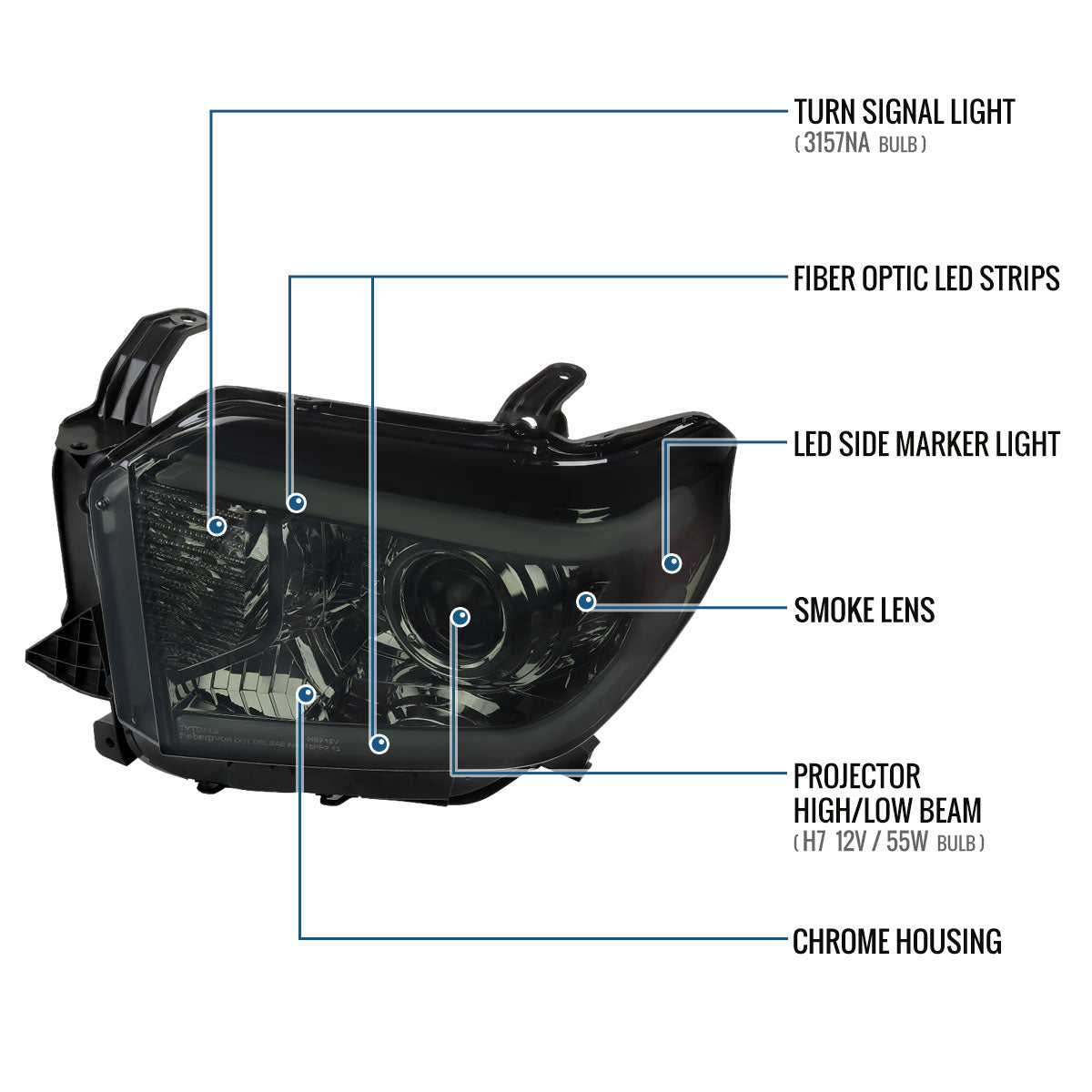 Ronnin - Fits 2014-2021 Toyota Tundra Upgraded Replacement LED Running Light Tube Halogen Projector Headlights Assembly Pair | Smoke