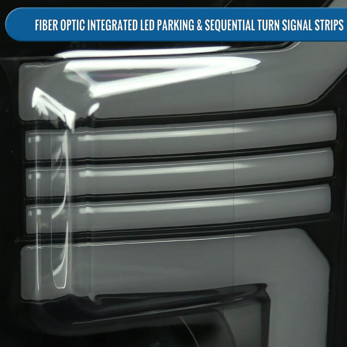 Ronnin - Fits 2015-2017 Ford F150 Halogen Dual Projector Headlights LED DRL Switchback Sequential Turn Signals With 2 Lighting Patterns Assembly Pair | Black Smoke
