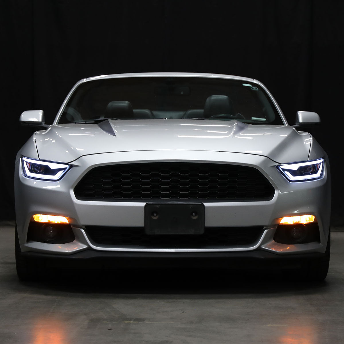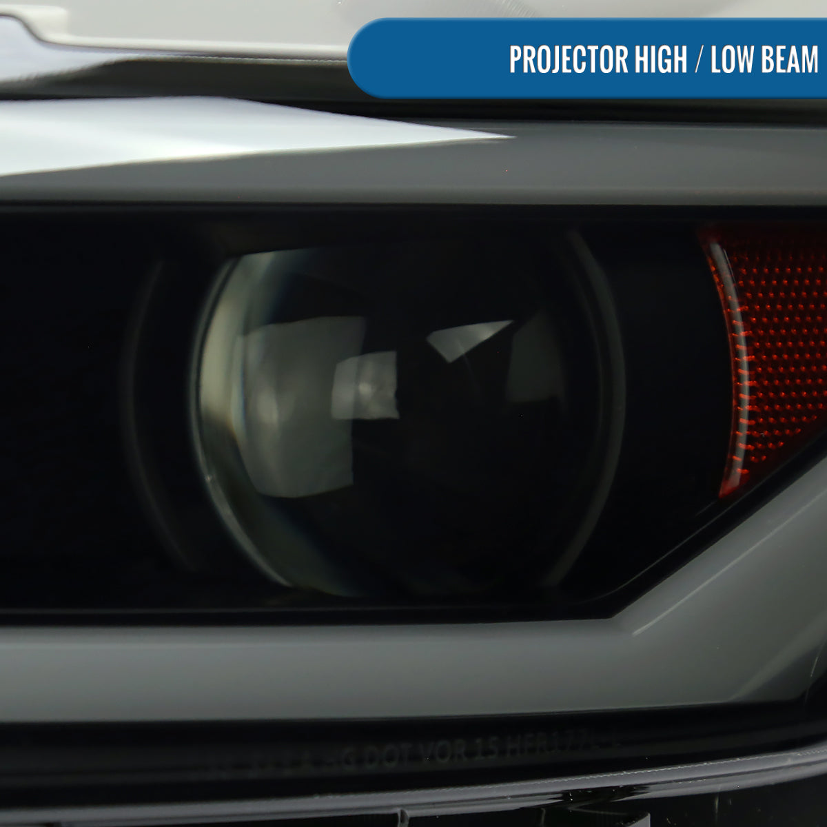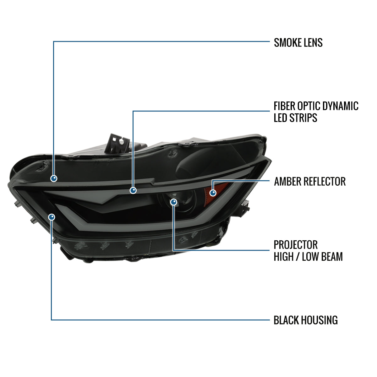 Ronnin - Fits 2015-2022 Ford Mustang Coupe Convertible Upgraded Factory Replacement HID Xenon Projector Headlights LED Tube Animated Startup Effect Parking Assembly | Black Smoke