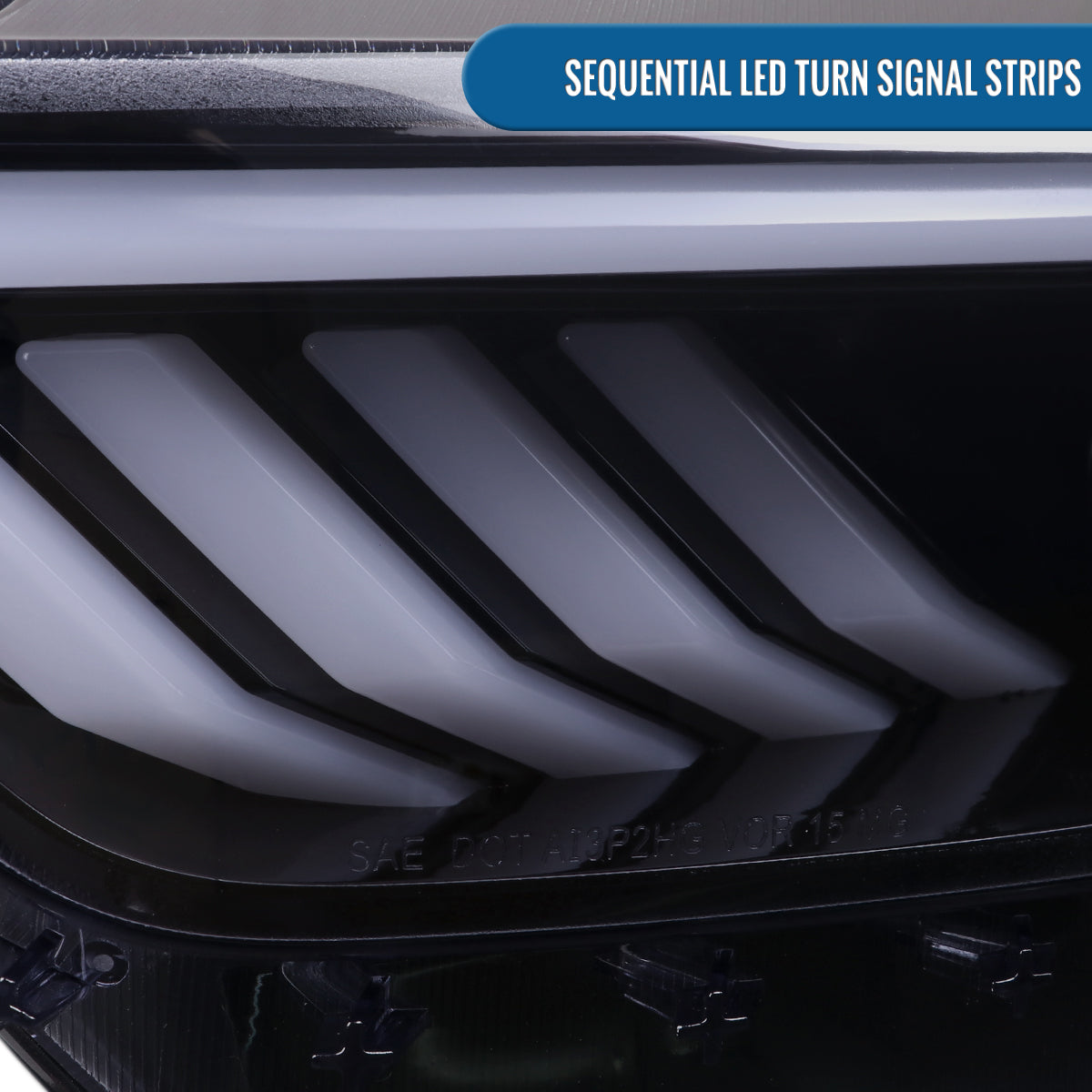 Ronnin - Fits 2015-2022 Ford Mustang Upgraded LED DRL Sequential Turn Signals Projector HID Headlights Assembly Pair | Black Smoke
