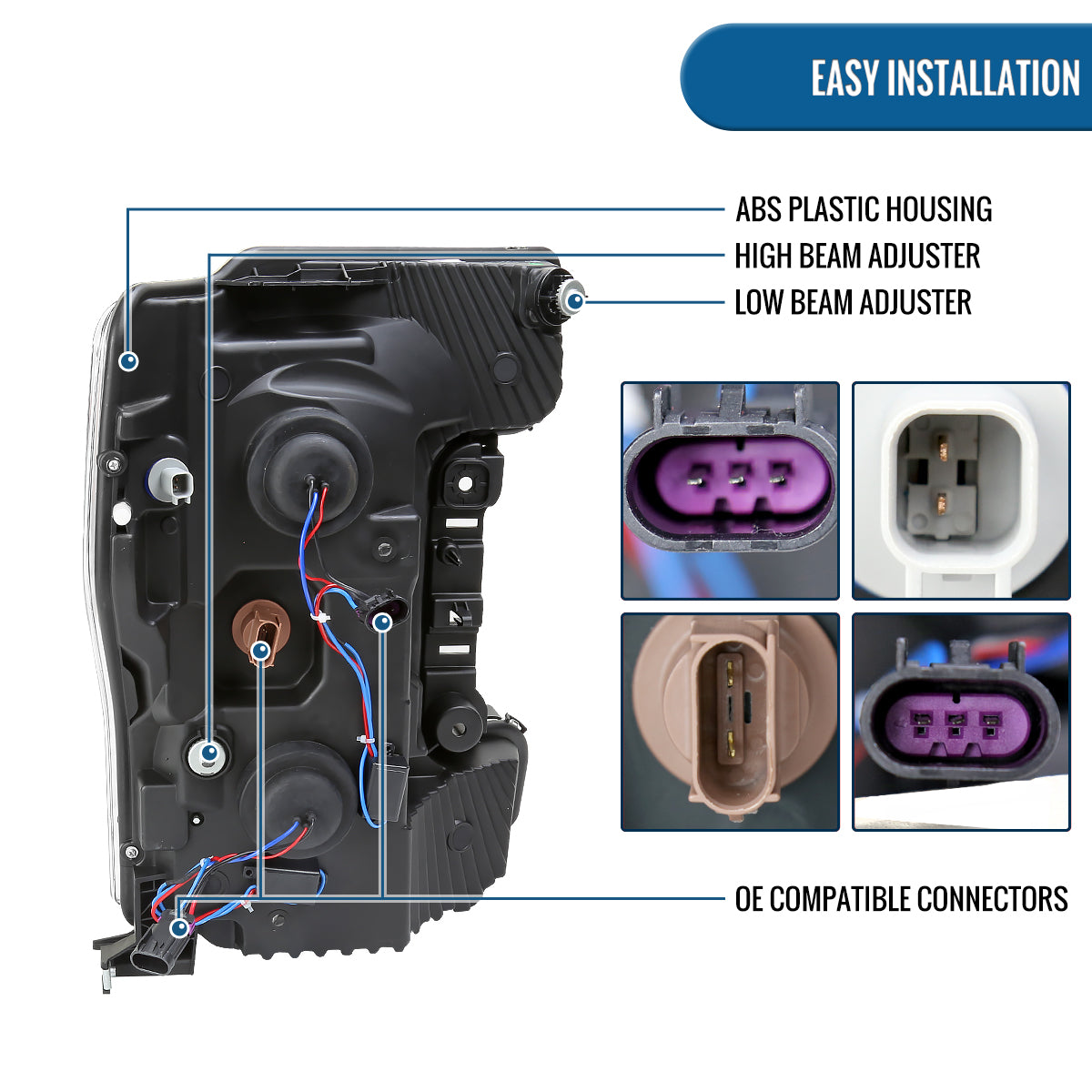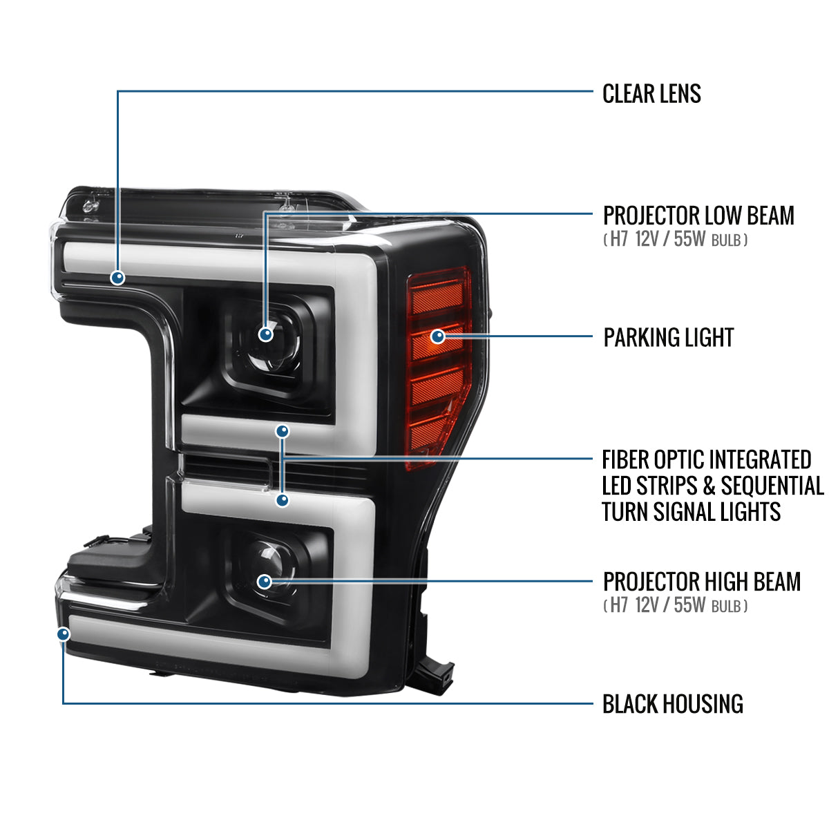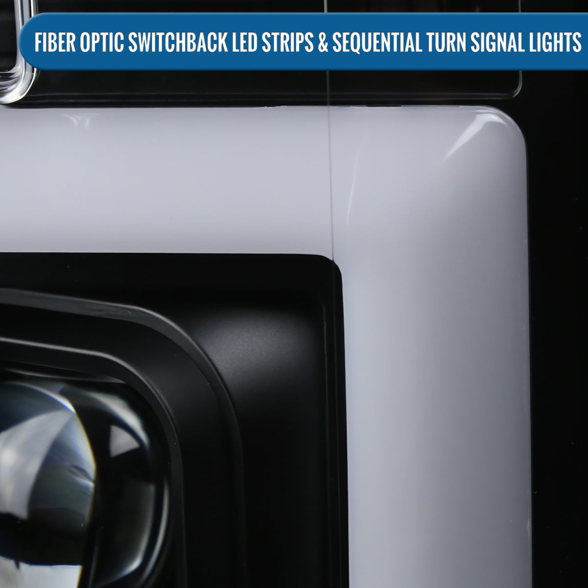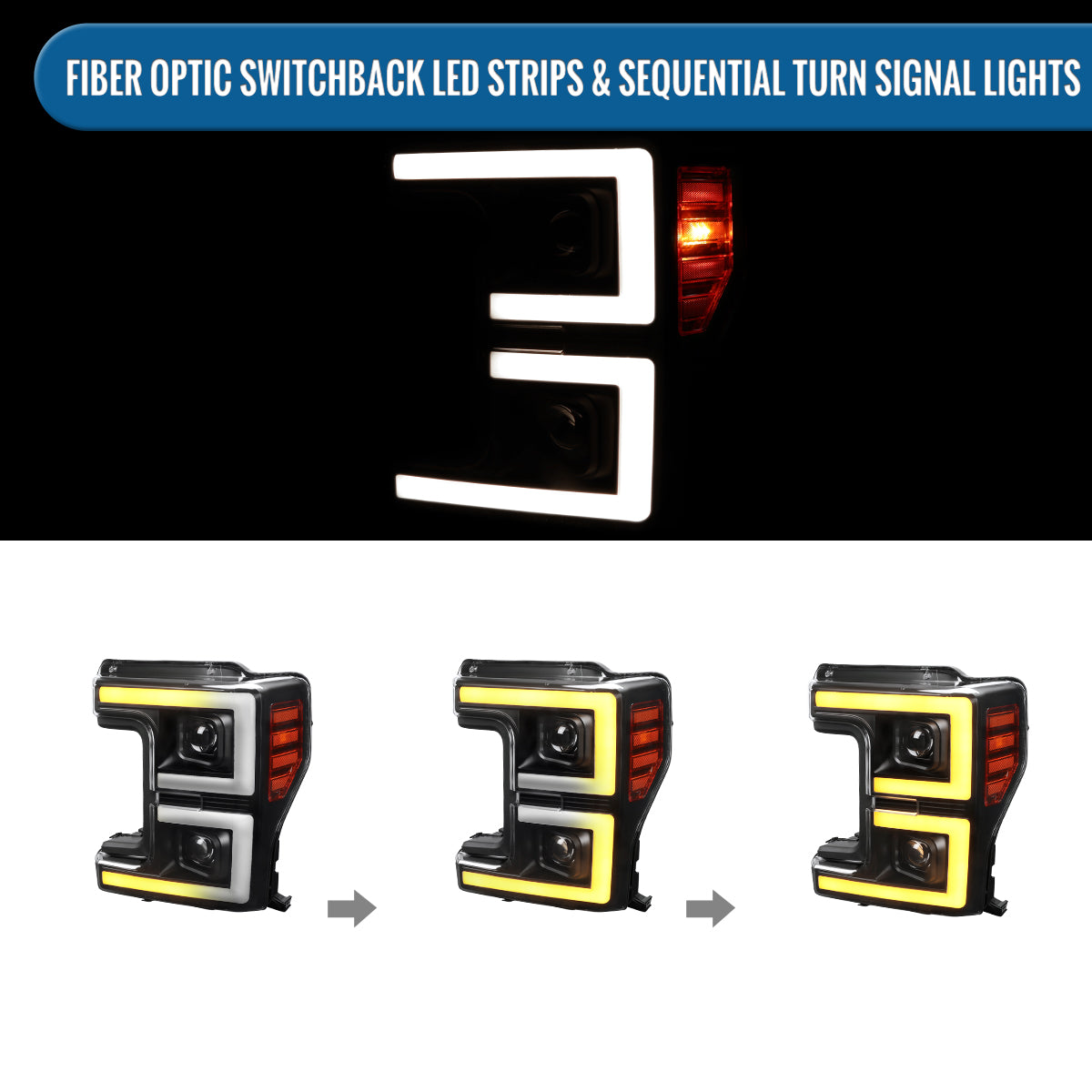 Ronnin - Fits 2017-2019 Ford F250 F350 F450 F550 Super Duty Upgraded LED Switchback Turn Signal Dual Halogen Projector Headlights Assembly Pair | Black