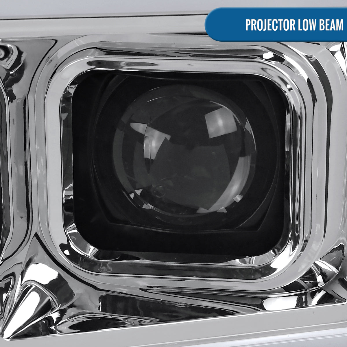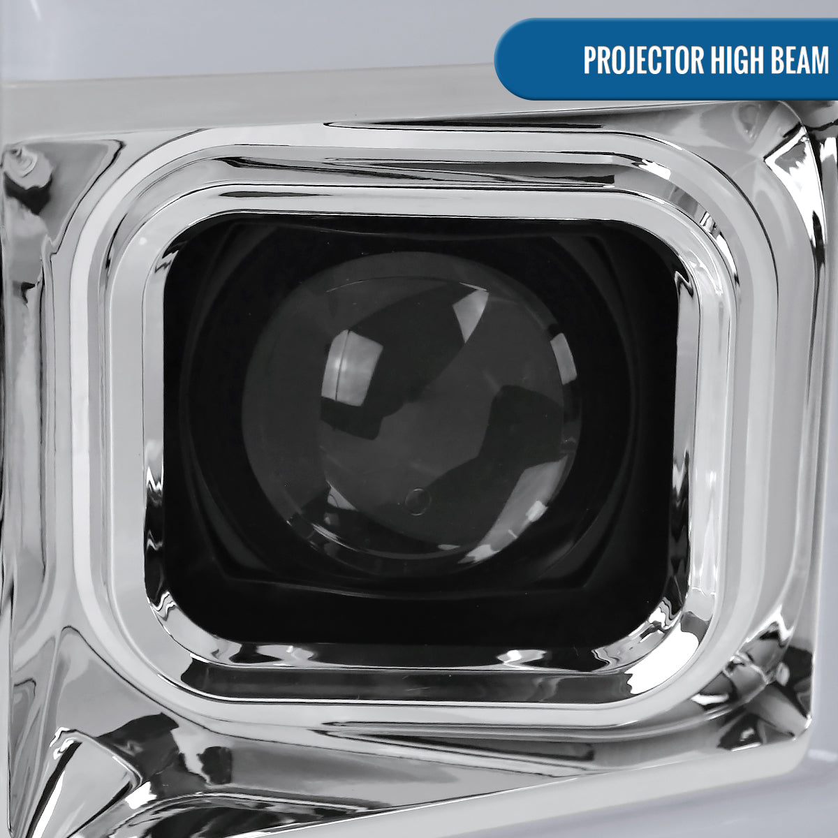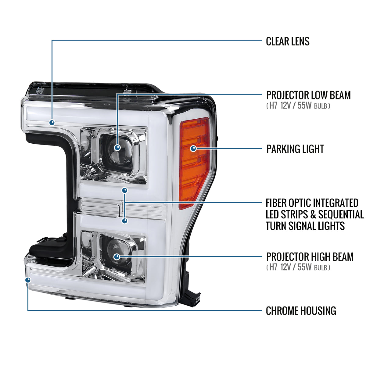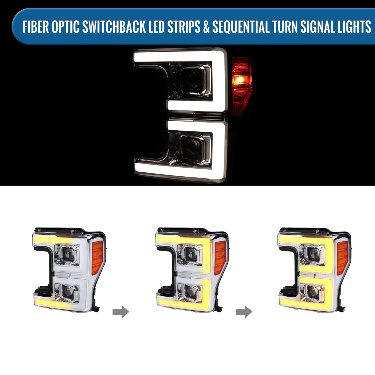 Ronnin - Fits 2017-2019 Ford F250 F350 F450 F550 Super Duty Upgraded LED Switchback Turn Signal Dual Halogen Projector Headlights Assembly Pair | Chrome