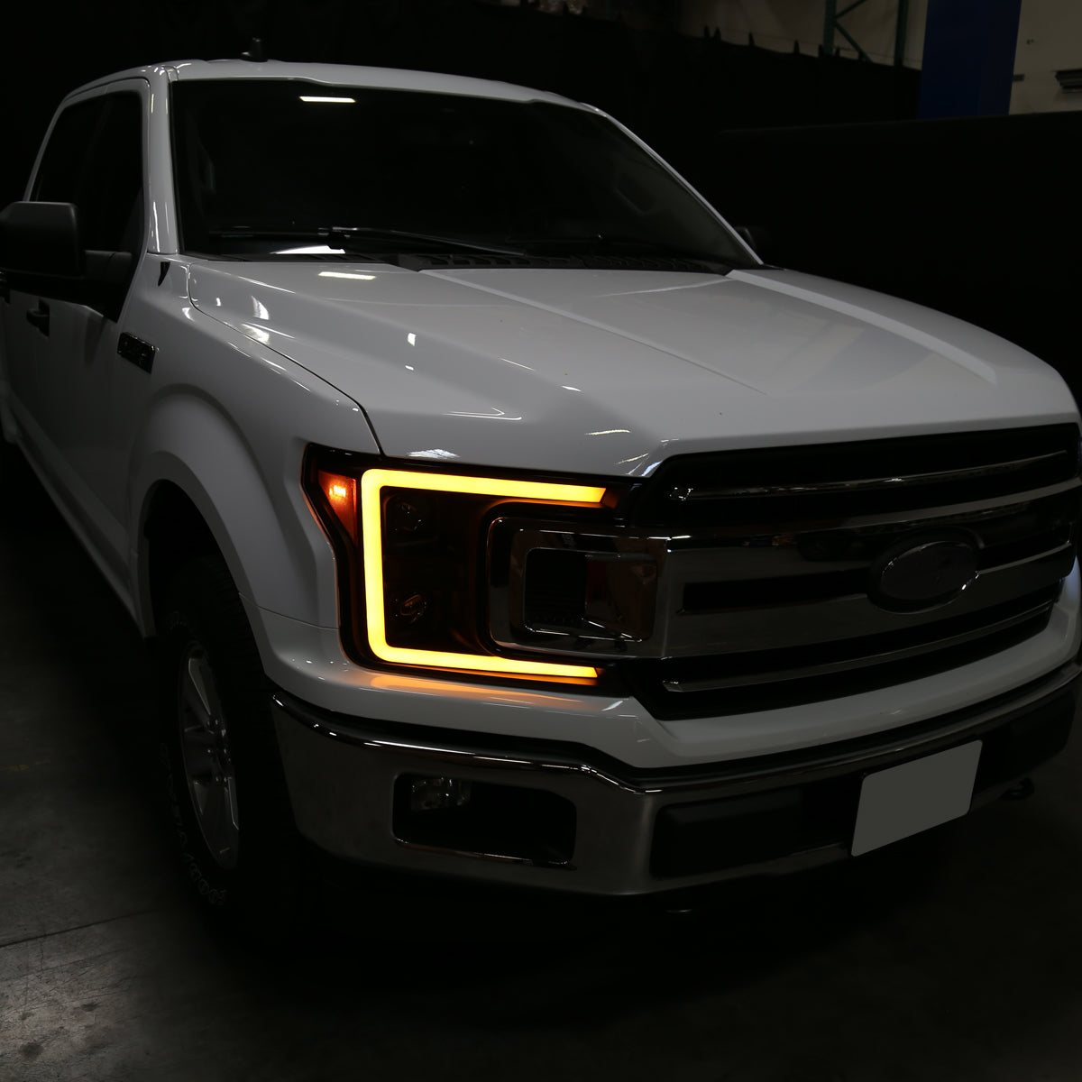 Ronnin - Fits 2018-2020 Ford F150 Amber DRL Halogen Dual Projector Headlights LED Switchback Sequential Turn Signal With 3 Lighting Patterns Assembly Pair | Black