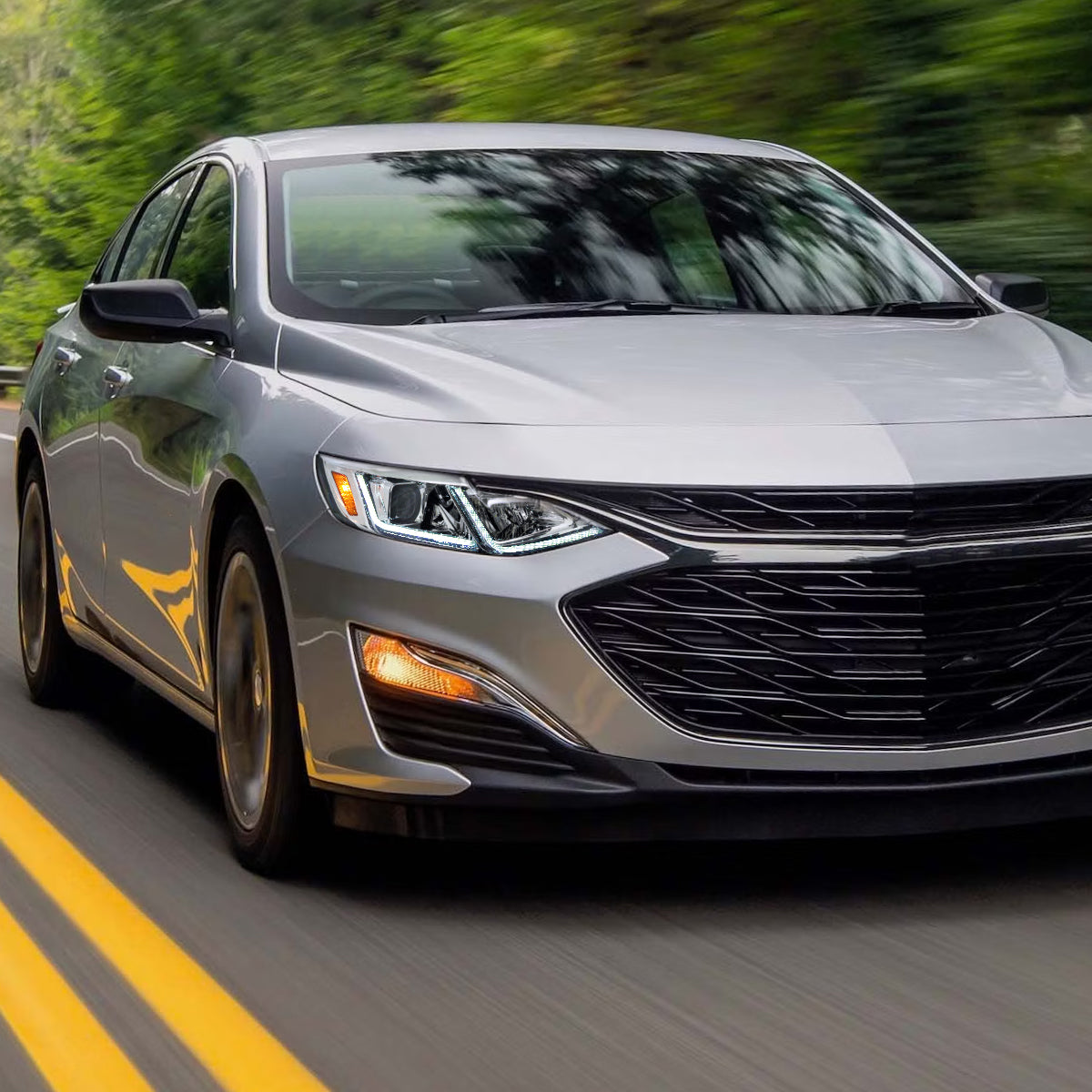 Ronnin - Fits 2019-2024 Chevy Malibu Full LED Projector Headlights Switchback Sequential Turn Signal + Animated Startup Effect Lamps Assembly Pair | Chrome