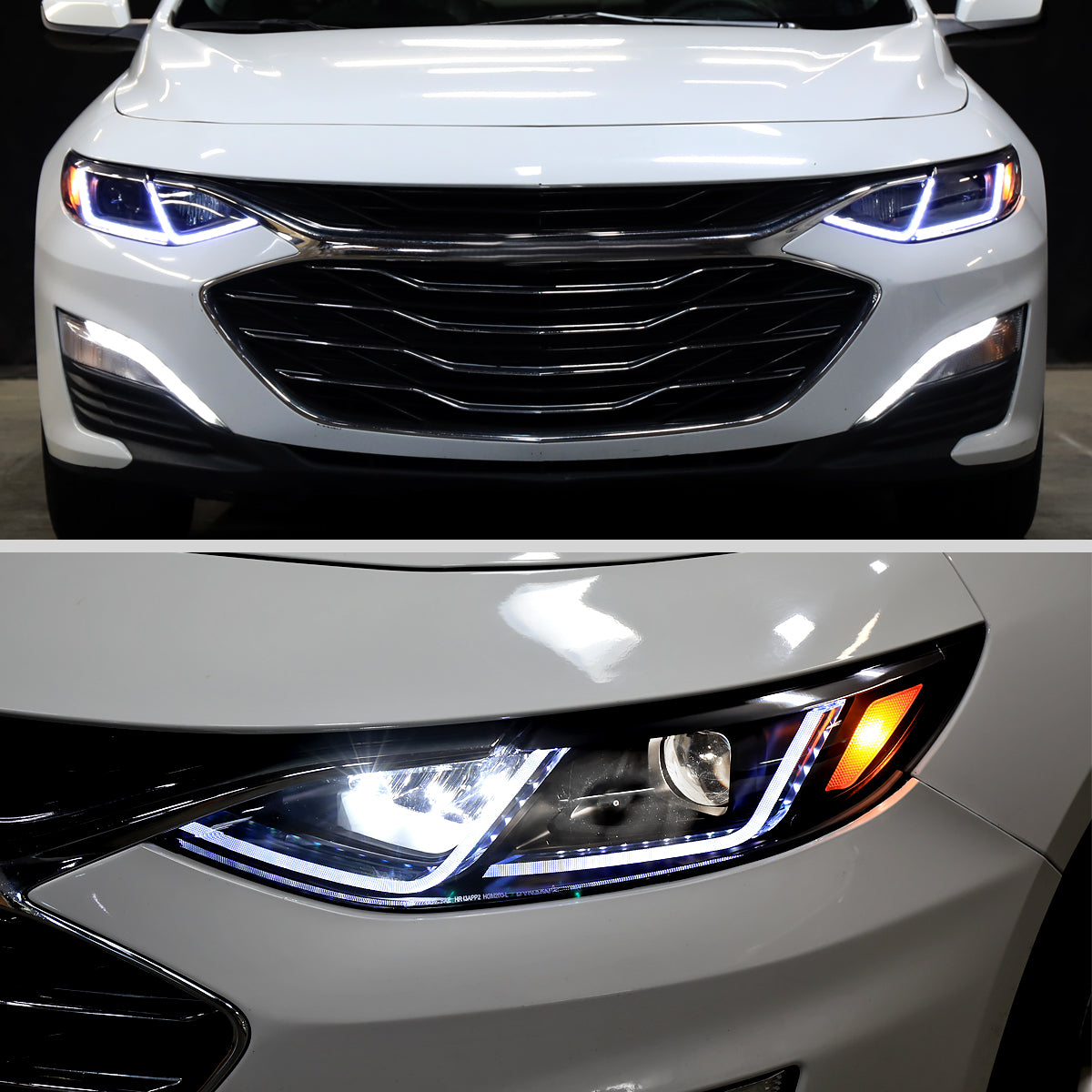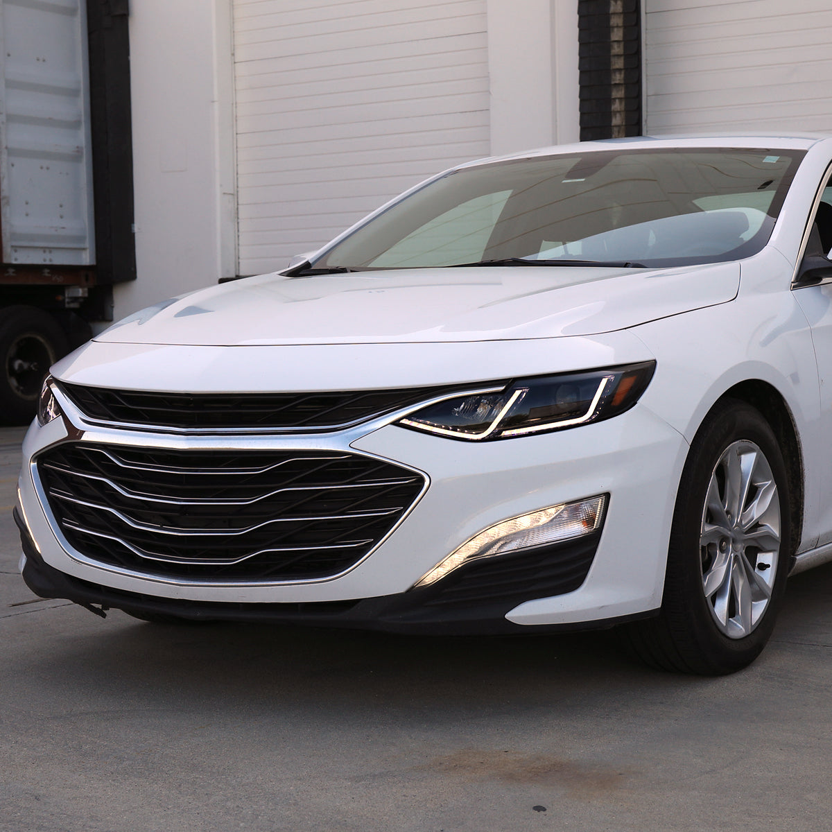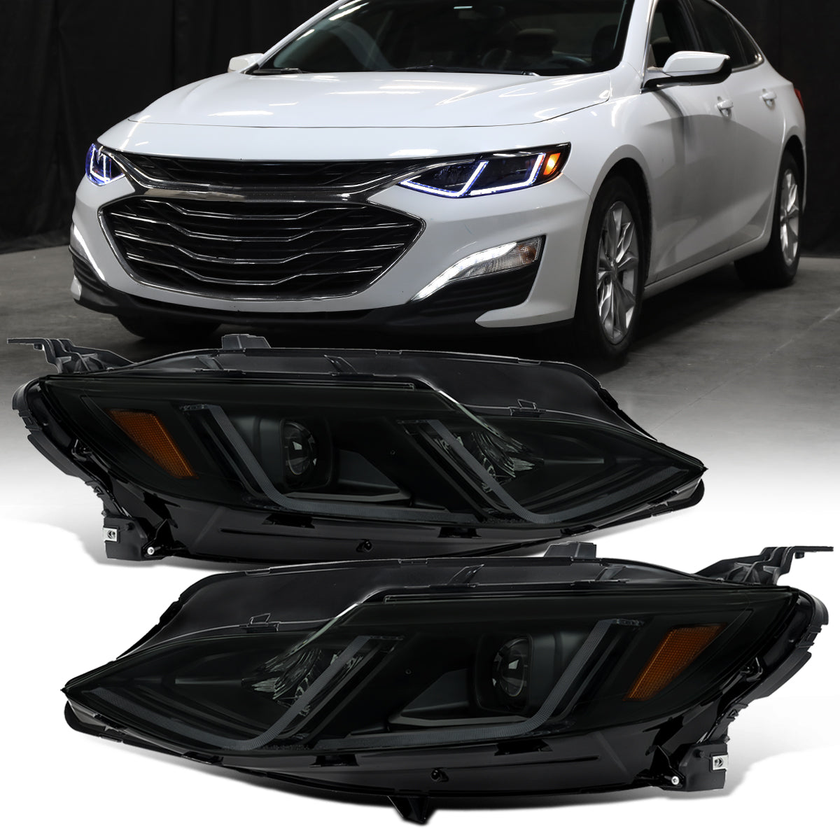 Ronnin - Fits 2019-2024 Chevy Malibu Halogen Projector Headlights Switchback LED Sequential Turn Signal + Animated Startup Effect Pair | Black Smoke
