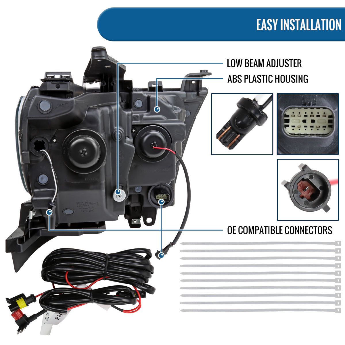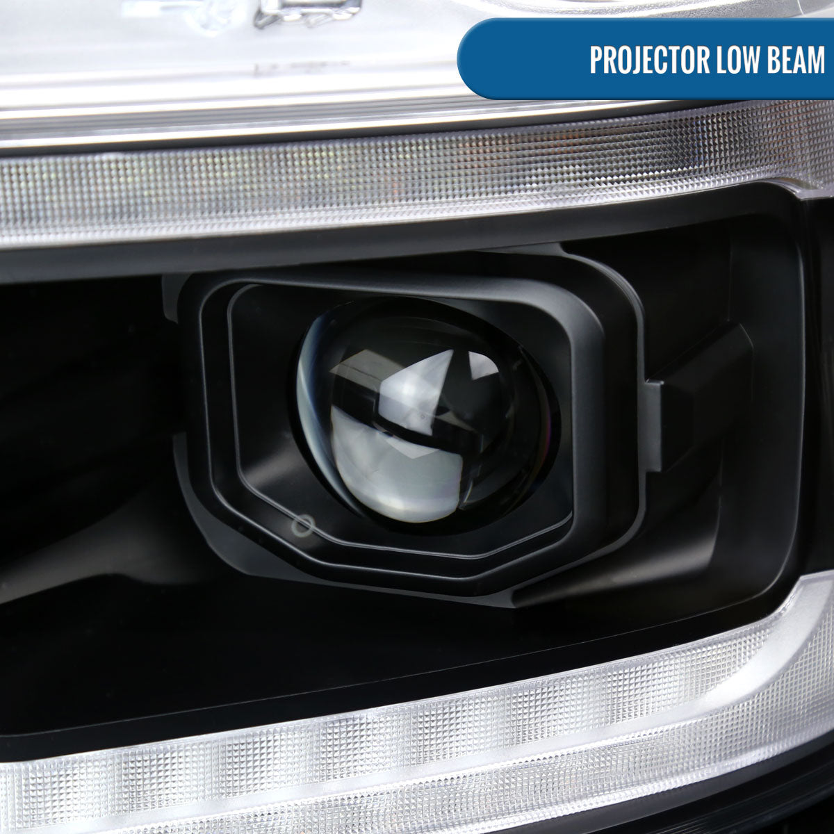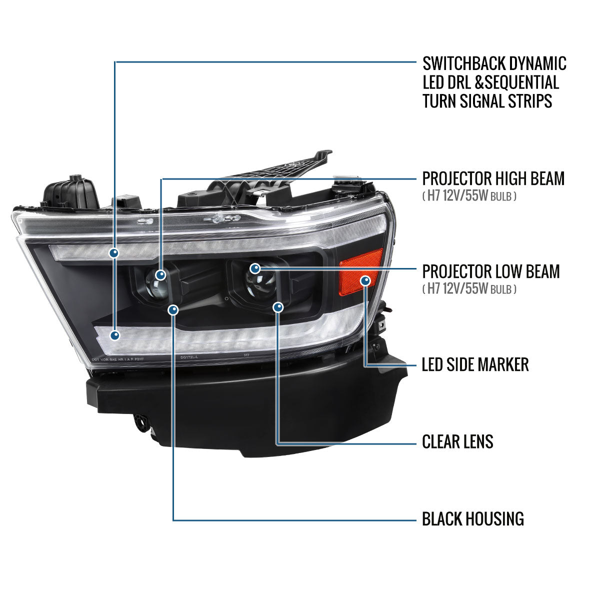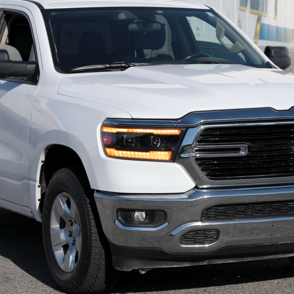 Ronnin - Fits 2019-2024 Ram 1500 Amber DRL Halogen Dual Projector Headlights LED Switchback Sequential Signal + Animated Startup Effect Assembly Pair | Black