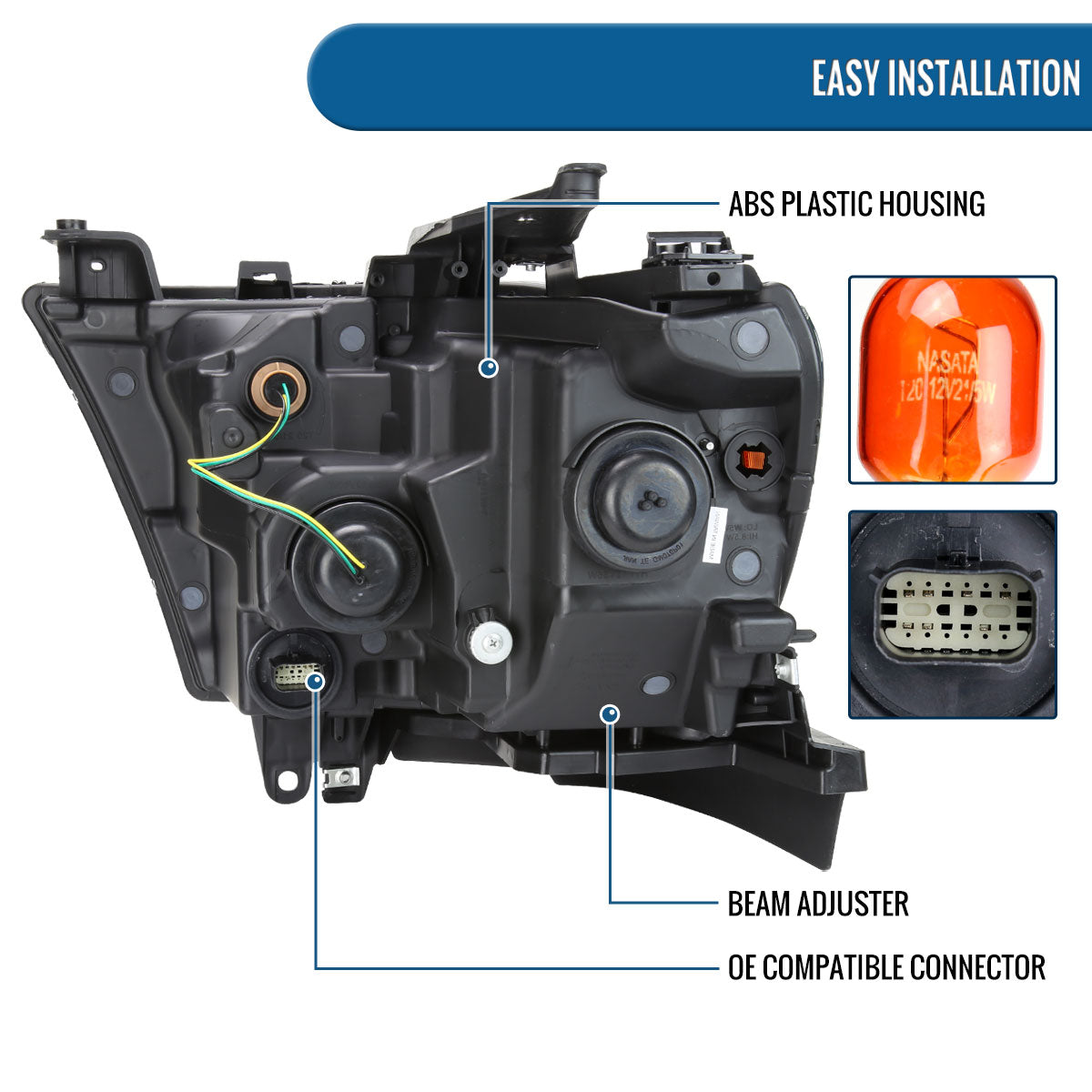 Ronnin - Fits 2019-2024 Ram 1500 Factory Replacement Halogen Headlights Assembly Piece | Passenger Side | Chrome