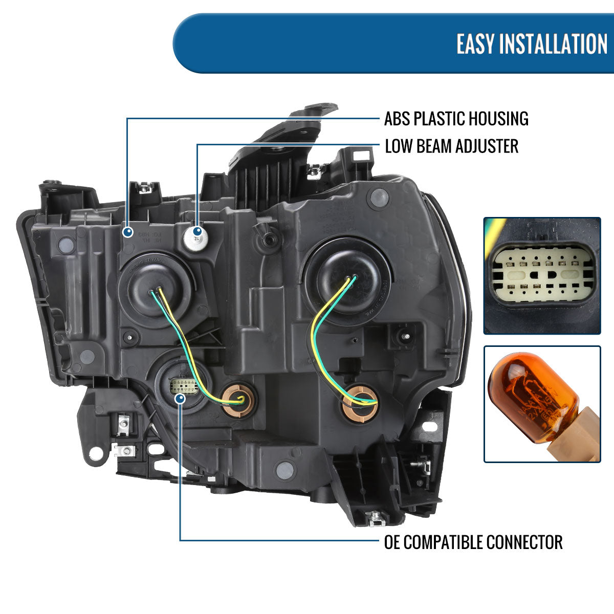 Ronnin - Fits 2019-2024 Ram 2500 3500 4500 5500 Factory Replacement Halogen Headlight Assembly Piece | Right Passenger Side | Black