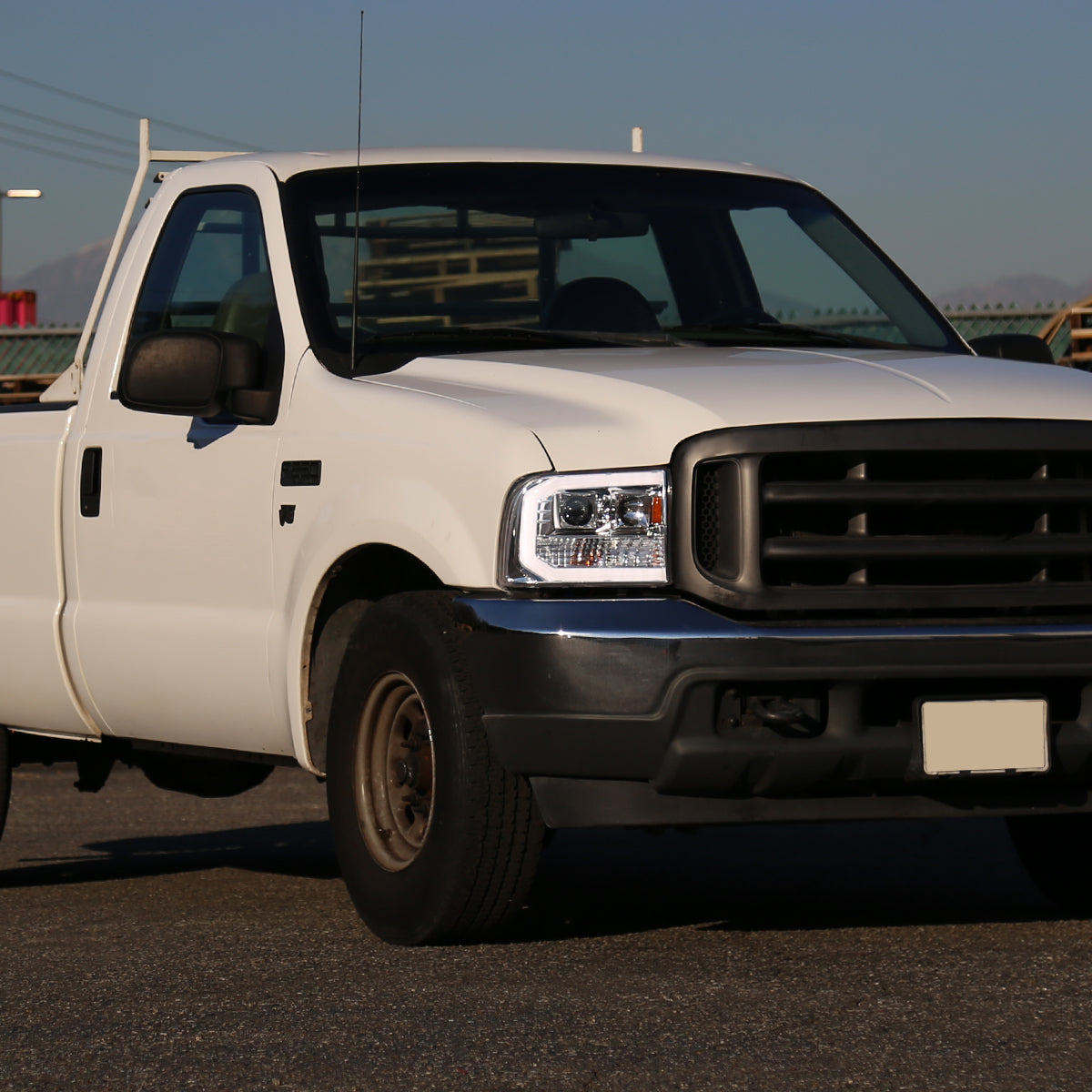 Ronnin - Fits 1999-2004 Ford F250 F350 F450 F550 Super Duty 2000-2004 Excursion Upgraded Replacement LED Running Lights Projector Headlights Assembly Pair | Chrome