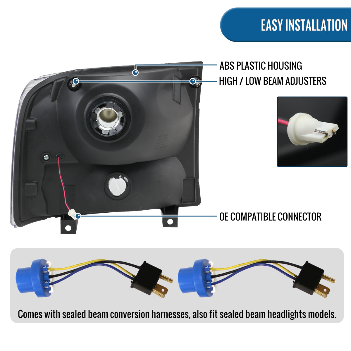 Ronnin - Fits 1999-2004 Ford F250 F350 F450 F550 Super Duty 2000-2004 US Excursion All-in-One Factory Replacement Headlights Assembly Pair | Smoke