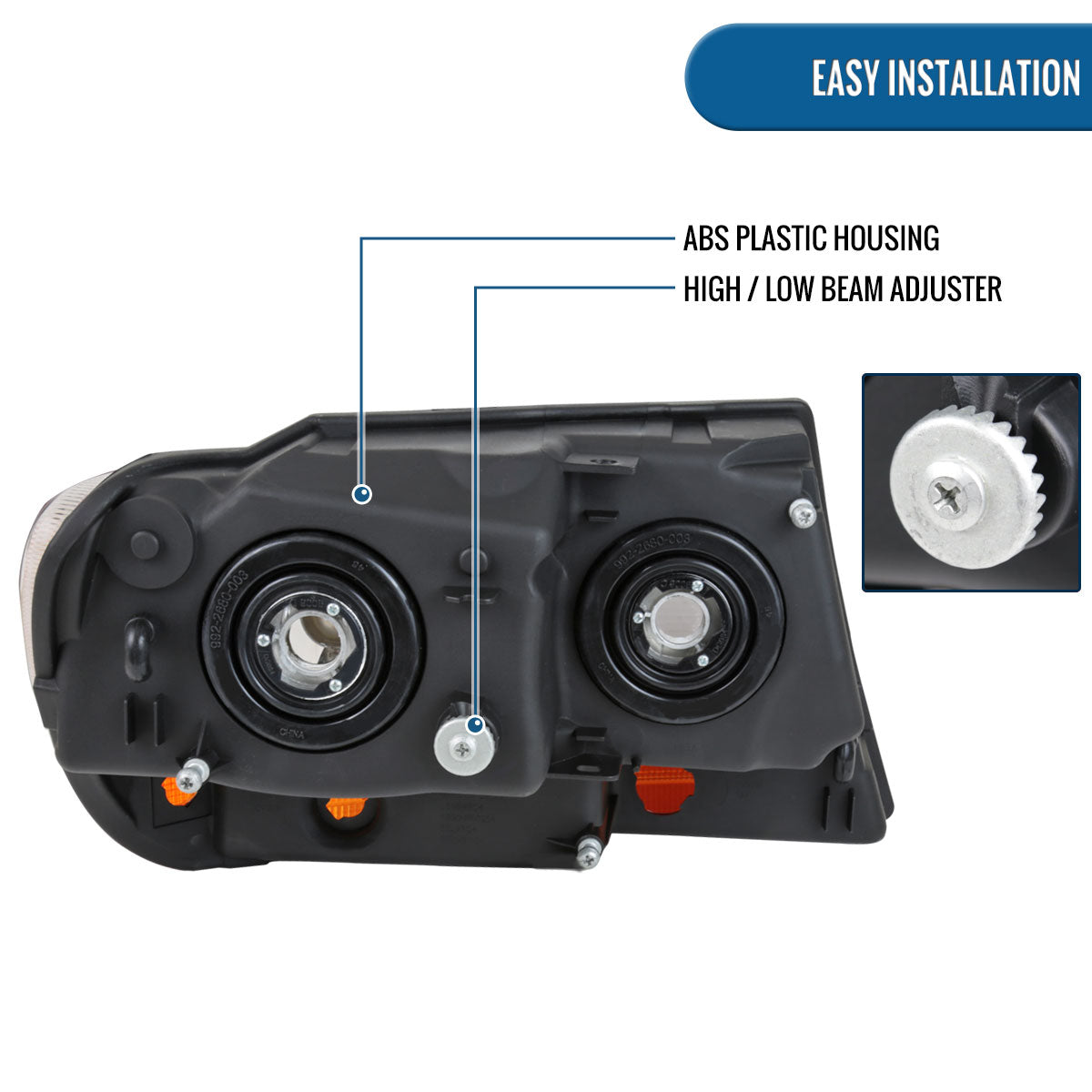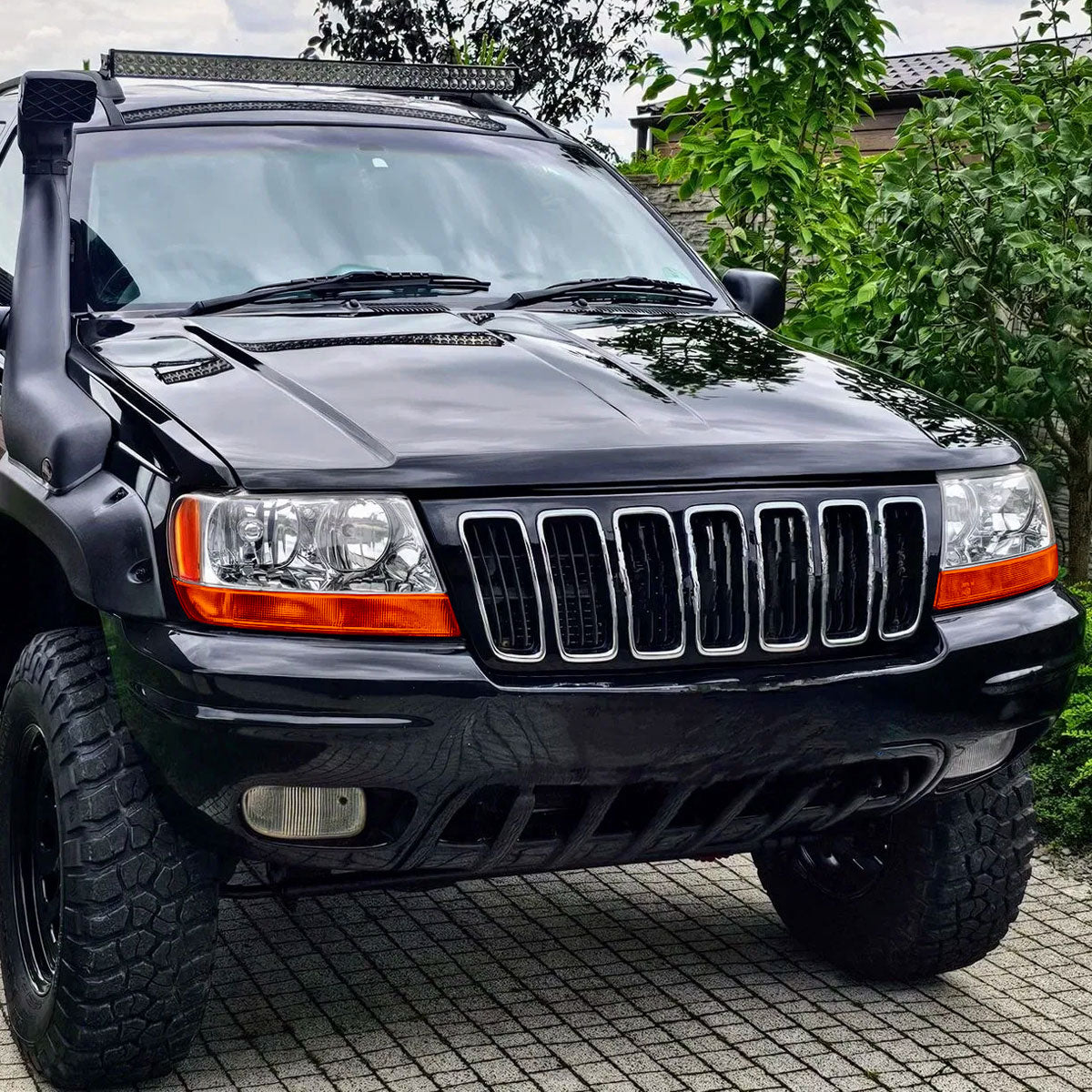 Ronnin - Fits 1999-2004 Jeep Grand Cherokee Factory Replacement Headlights Amber Turn Signals Lens Assembly Pair | Chrome