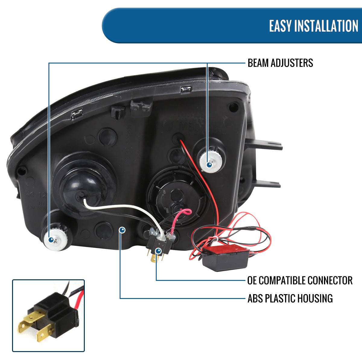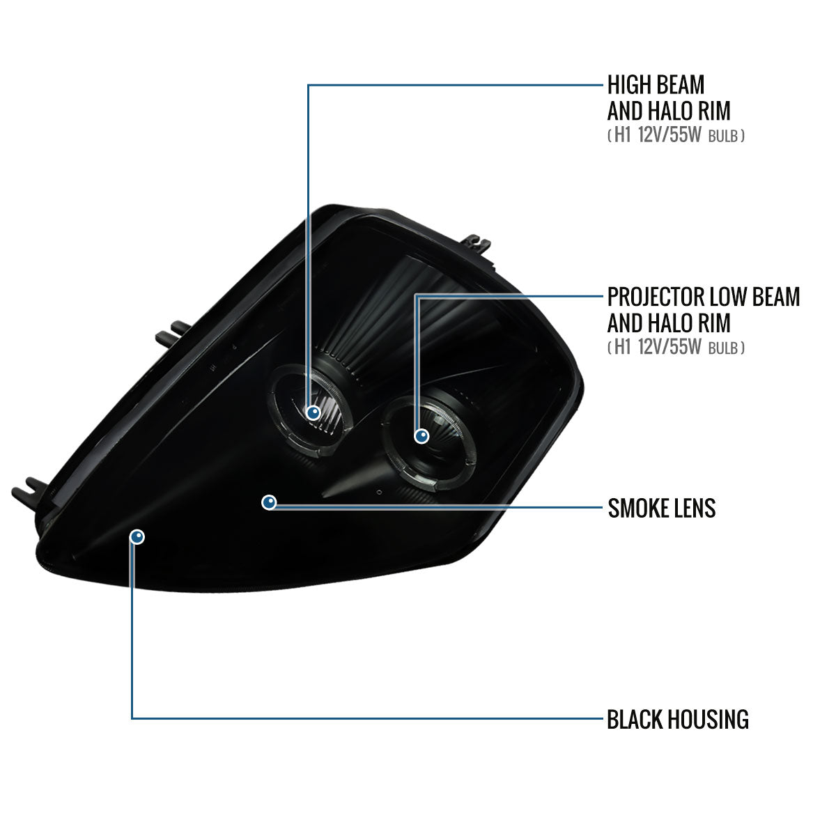 Ronnin - Fits 2000-2005 Mitsubishi Eclipse Upgraded LED Dual Halo Rims Running Lights Projector Headlights Assembly Pair | Black Smoke