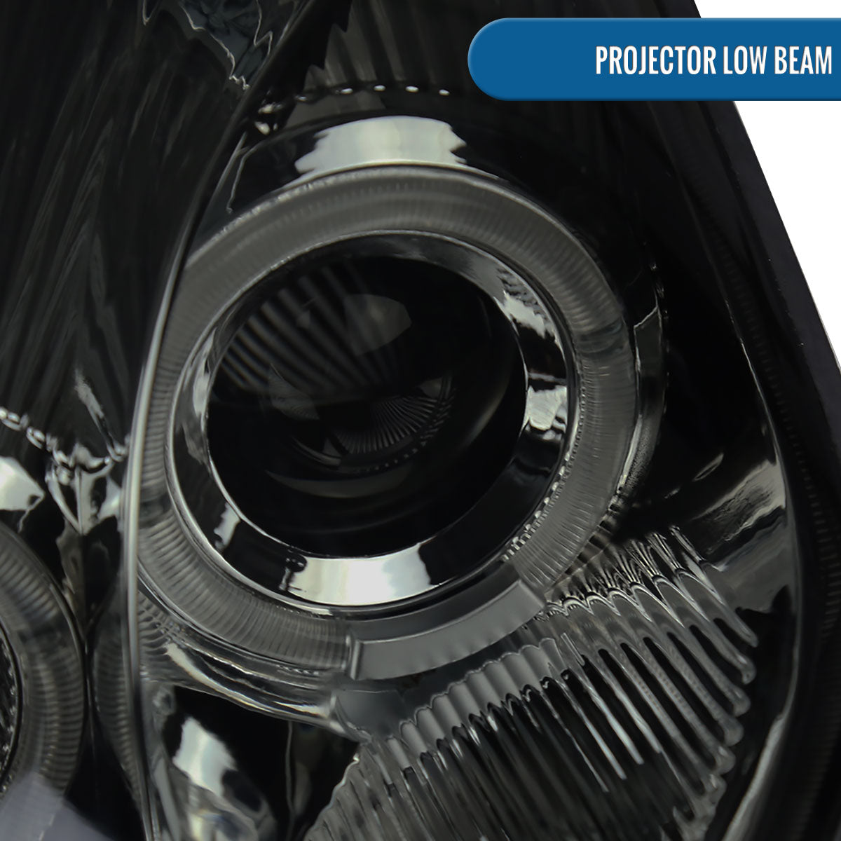 Ronnin - Fits 2000-2005 Mitsubishi Eclipse Upgraded LED Dual Halo Rims Running Lights Projector Headlights Assembly Pair | Smoke
