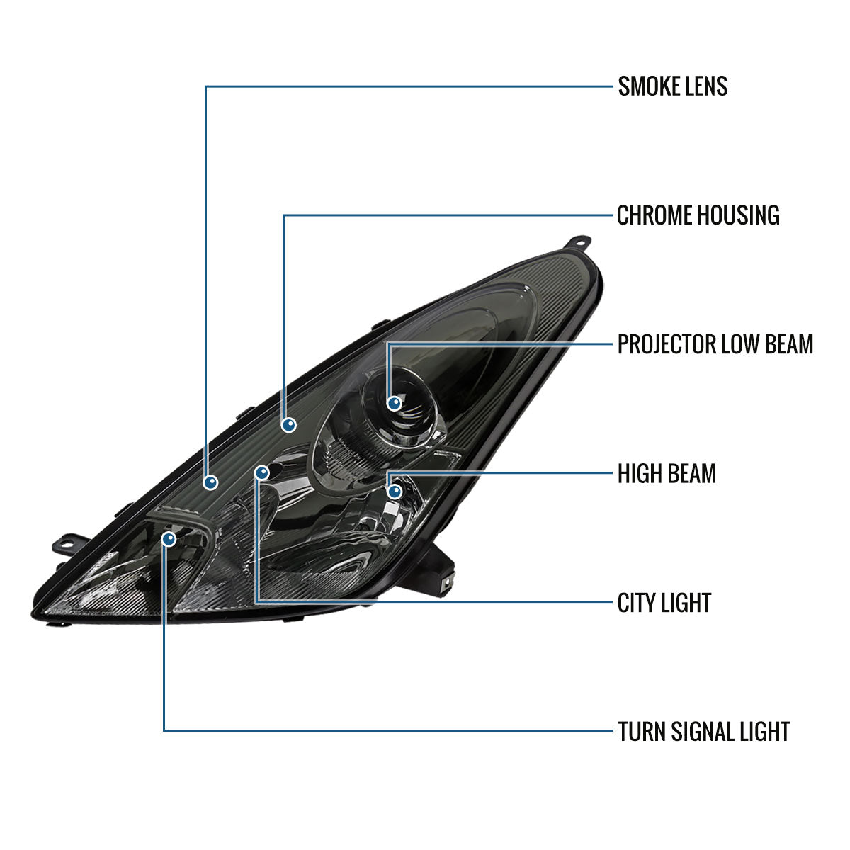 Ronnin - Fits 2000-2005 Toyota Celica GT GTS Projector Headlights Assembly OE Replacement Pair | Smoke