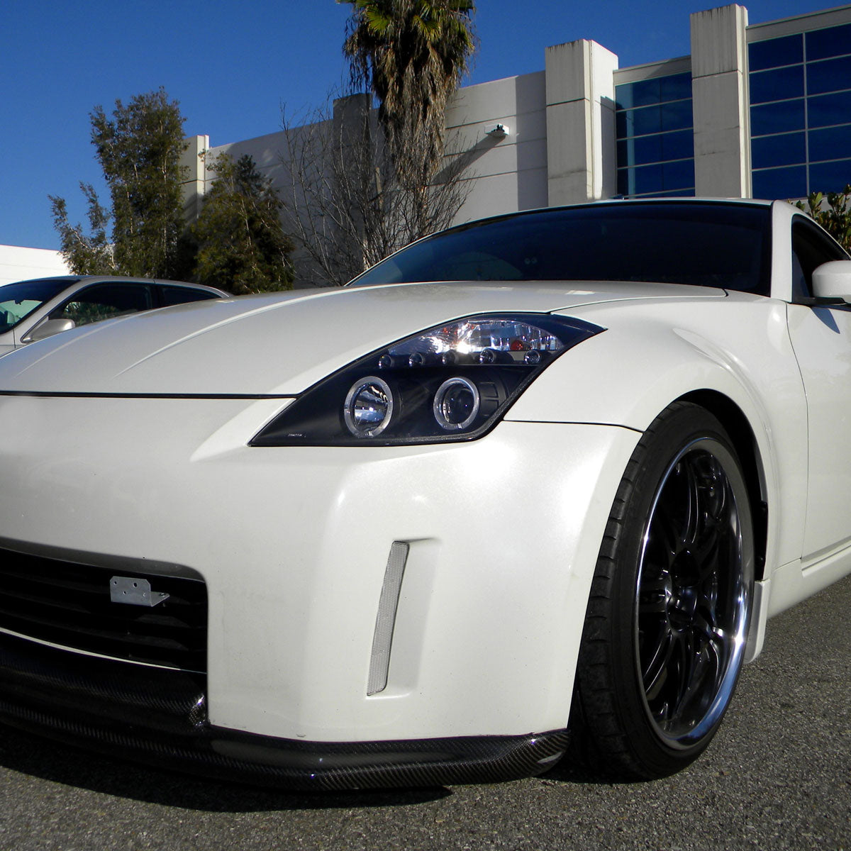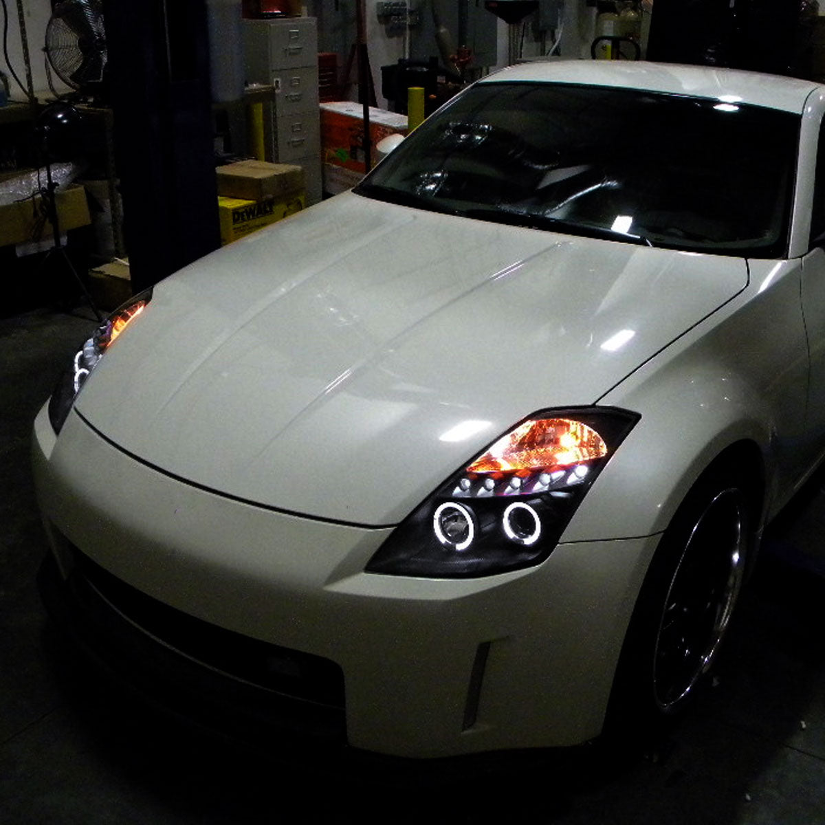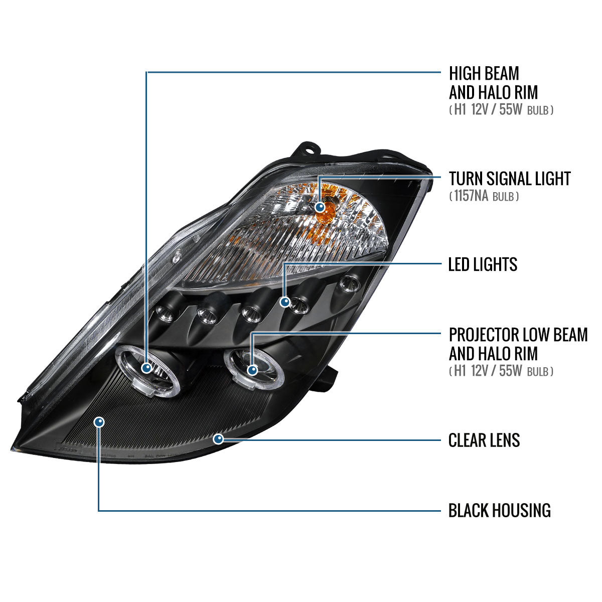 Ronnin - Fits 2003-2005 Nissan 350Z Upgraded Replacement LED Dual Halo Rims Running Lights Halogen Projector Headlights Assembly Pair | Black