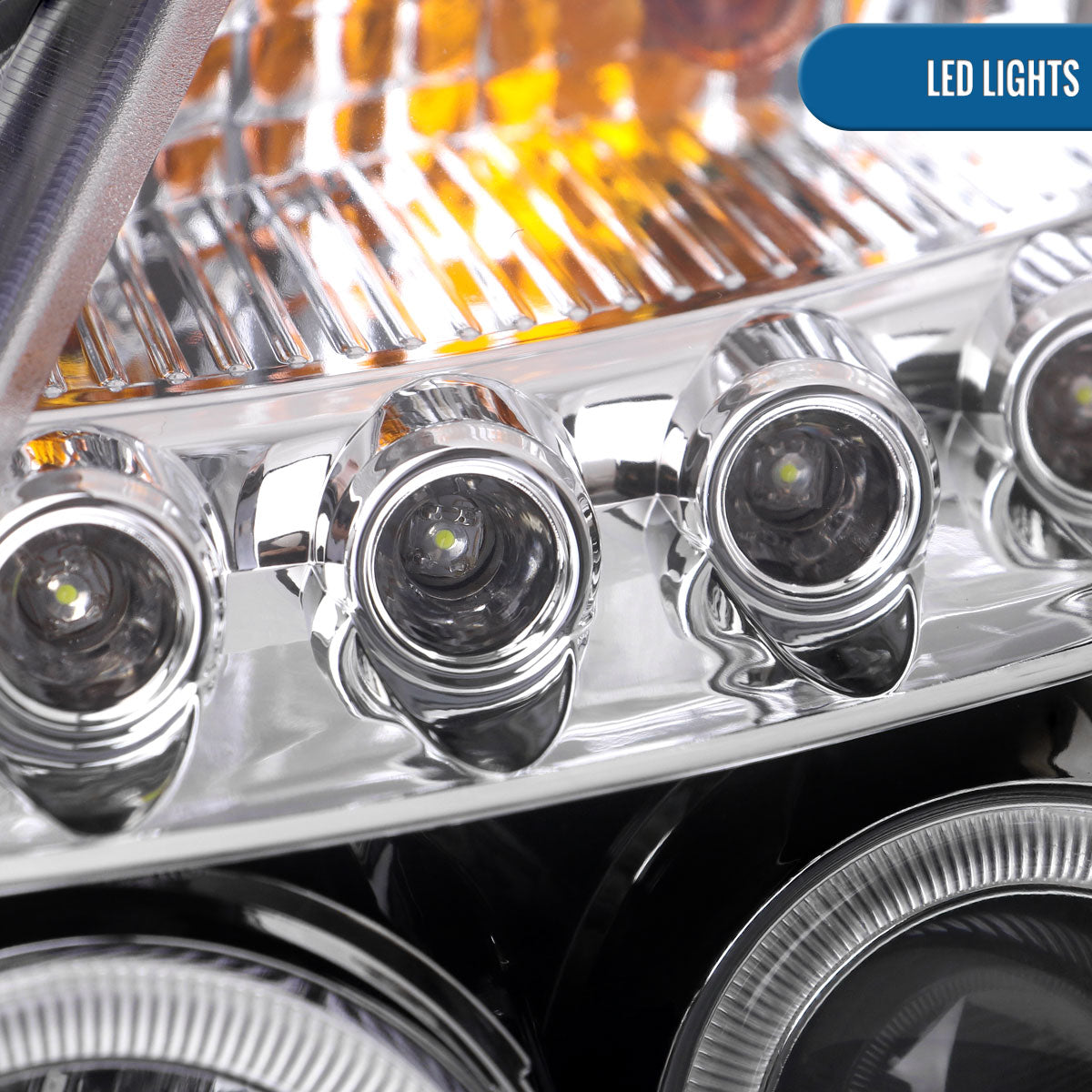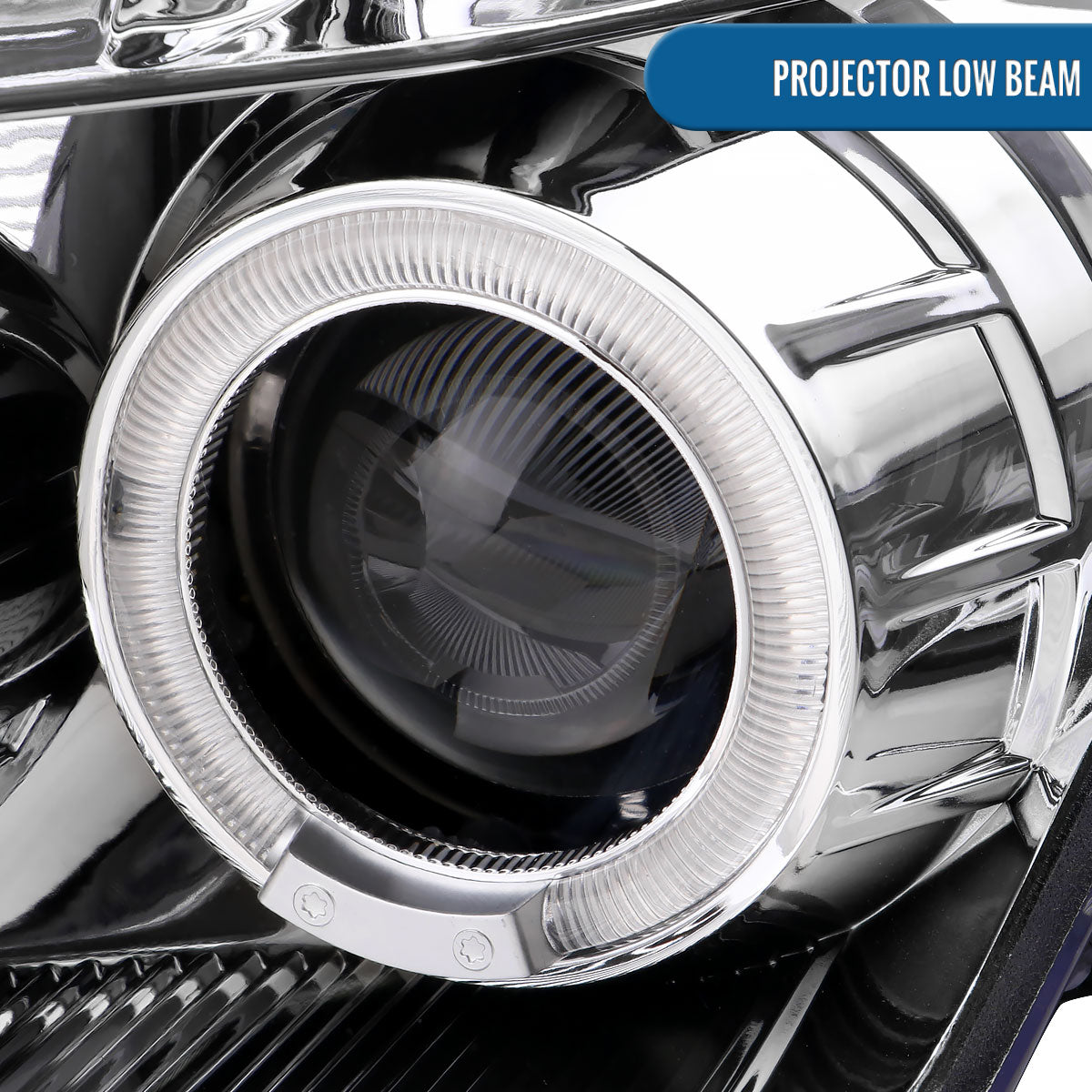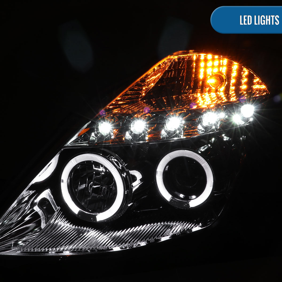 Ronnin - Fits 2003-2005 Nissan 350Z Upgraded Replacement LED Dual Halo Rims Running Lights Halogen Projector Headlights Assembly Pair | Chrome