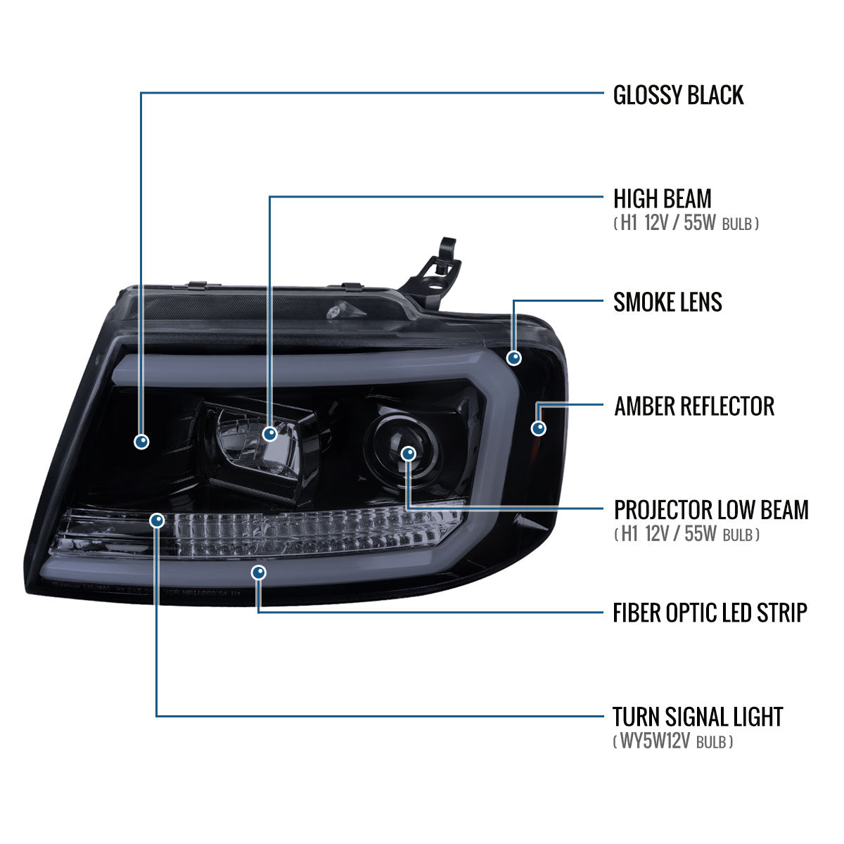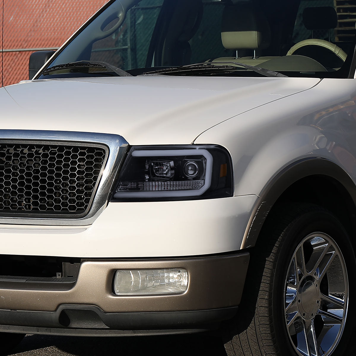 Ronnin - Fits 2004-2008 Ford F150 Lincoln Mark LT Upgraded Replacement LED Tube Driving Lights Projector Headlights Assembly Pair | Black Smoke