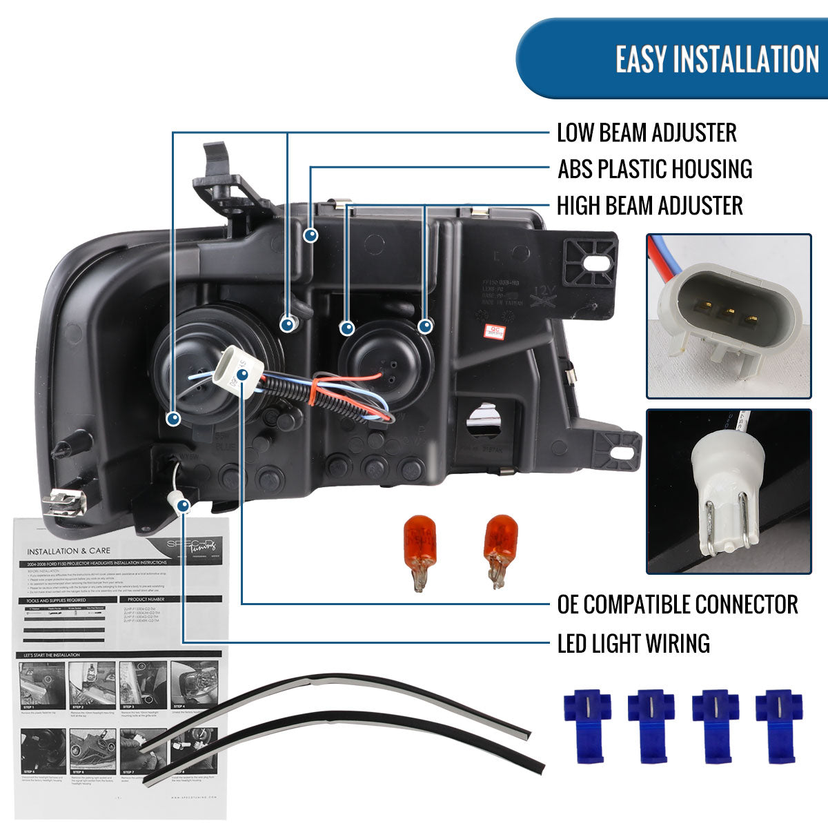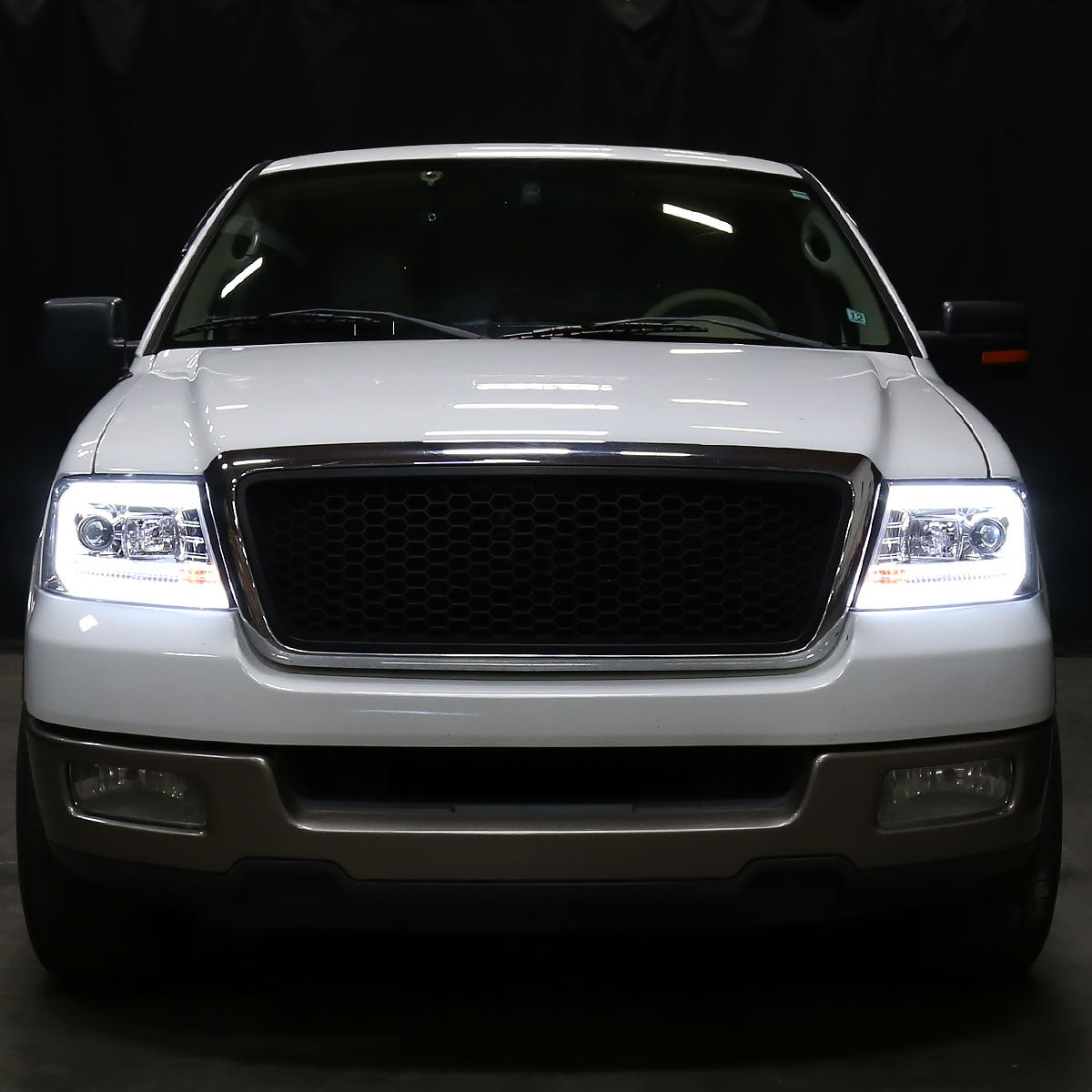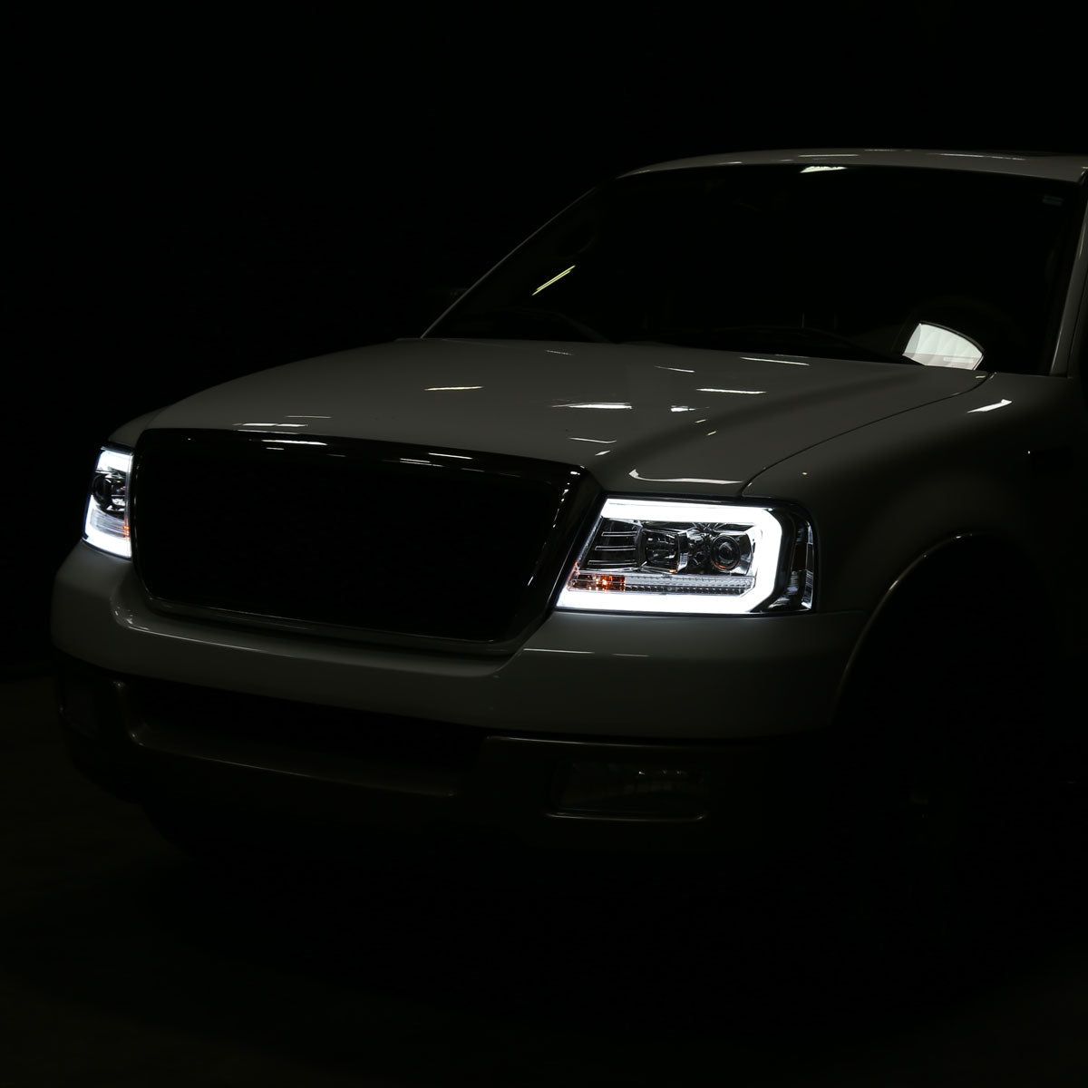 Ronnin - Fits 2004-2008 Ford F150 Lincoln Mark LT Upgraded Replacement LED Tube Driving Lights Projector Headlights Assembly Pair | Chrome