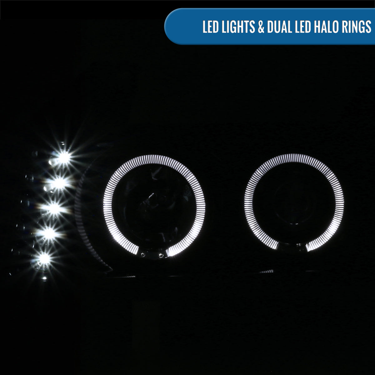 Ronnin - Fits 2004-2012 Chevy Colorado GMC Canyon Upgraded Replacement LED Dual Halo Rims Running Lights Projector Headlights Assembly Pair | Black Smoke