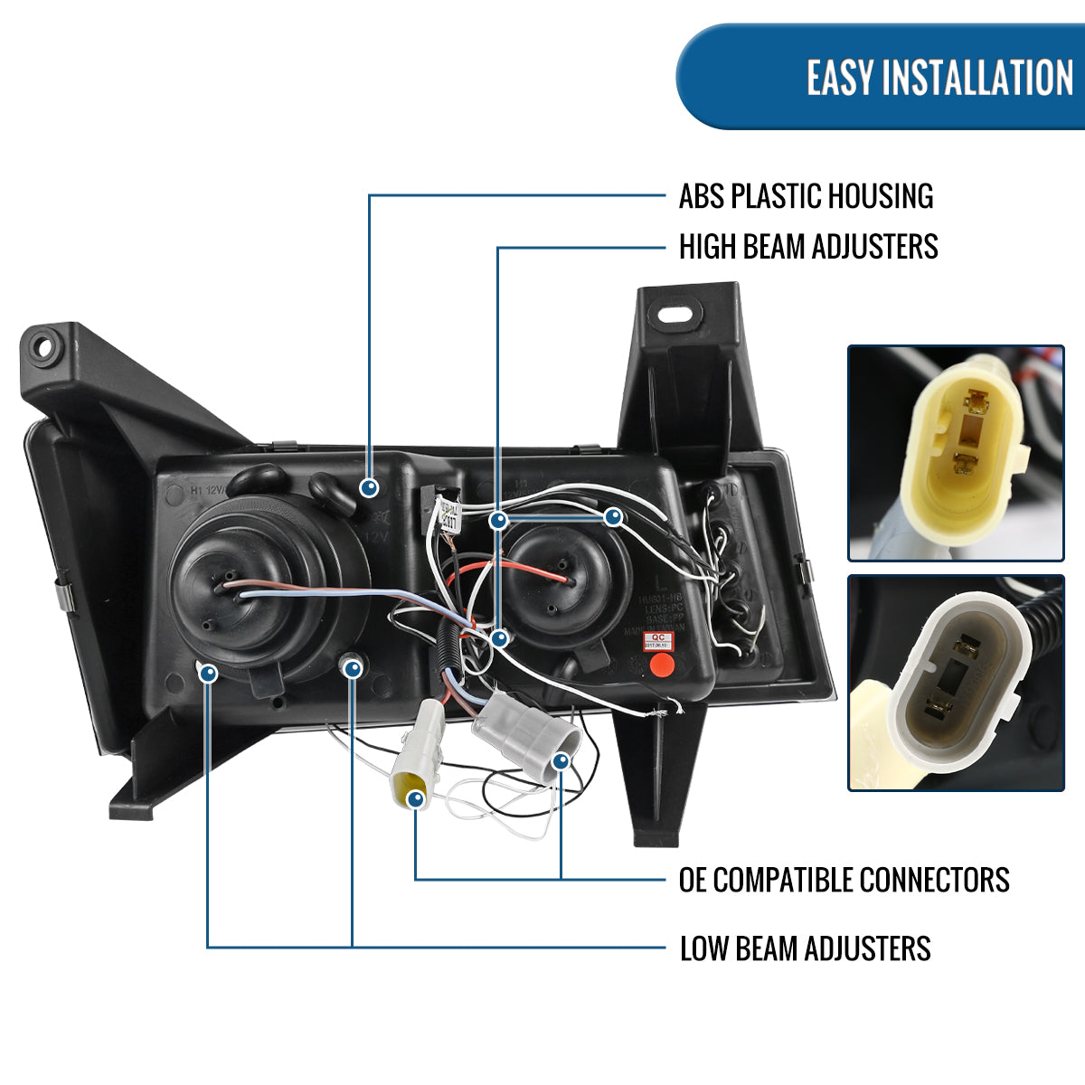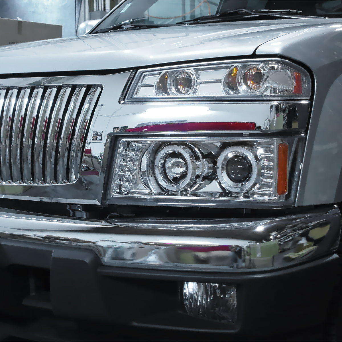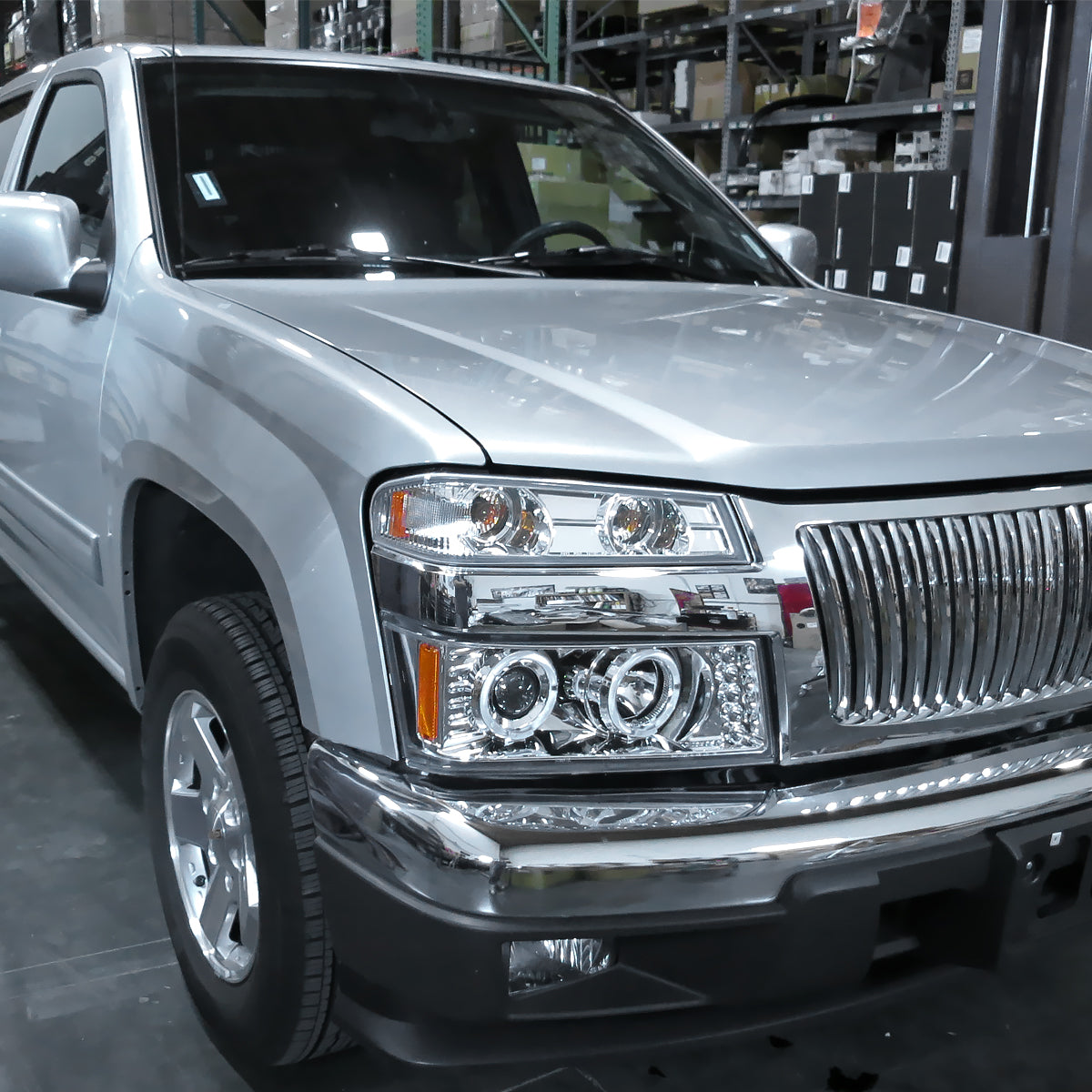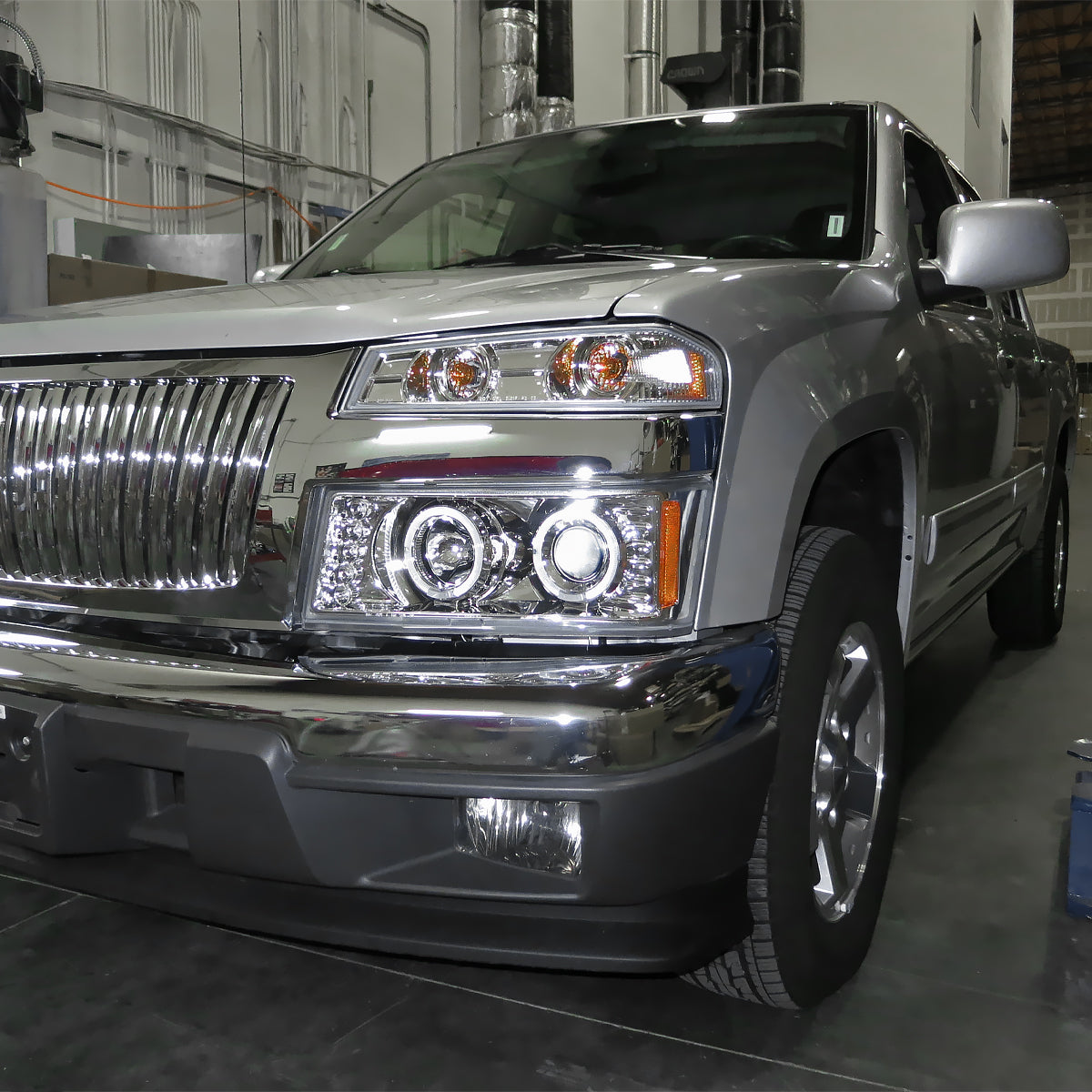 Ronnin - Fits 2004-2012 Chevy Colorado GMC Canyon Upgraded Replacement LED Dual Halo Rims Running Lights Projector Headlights Assembly Pair | Chrome