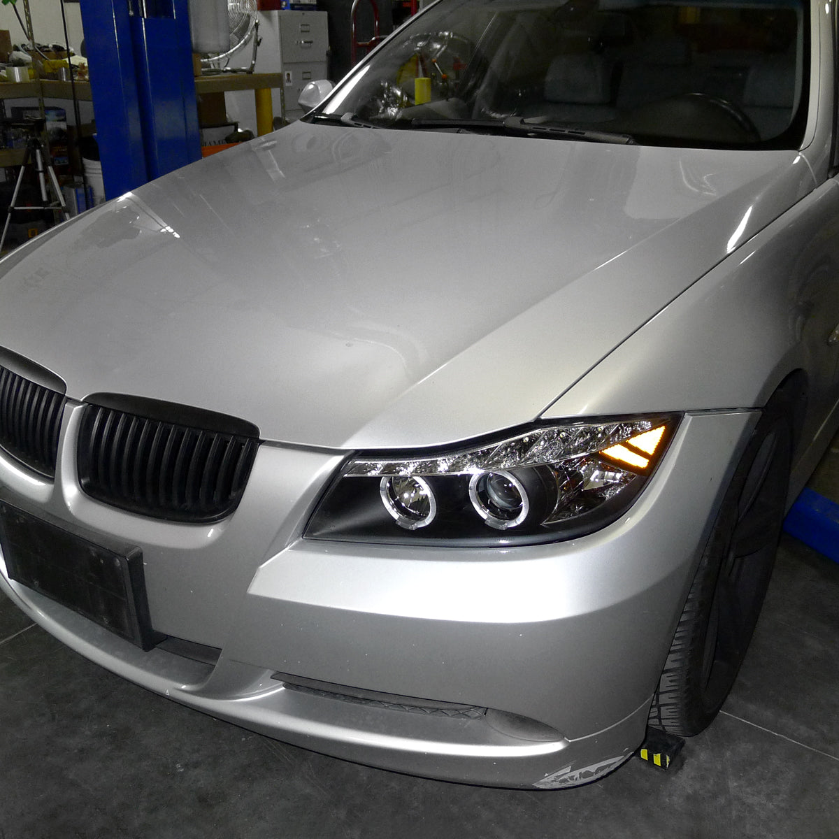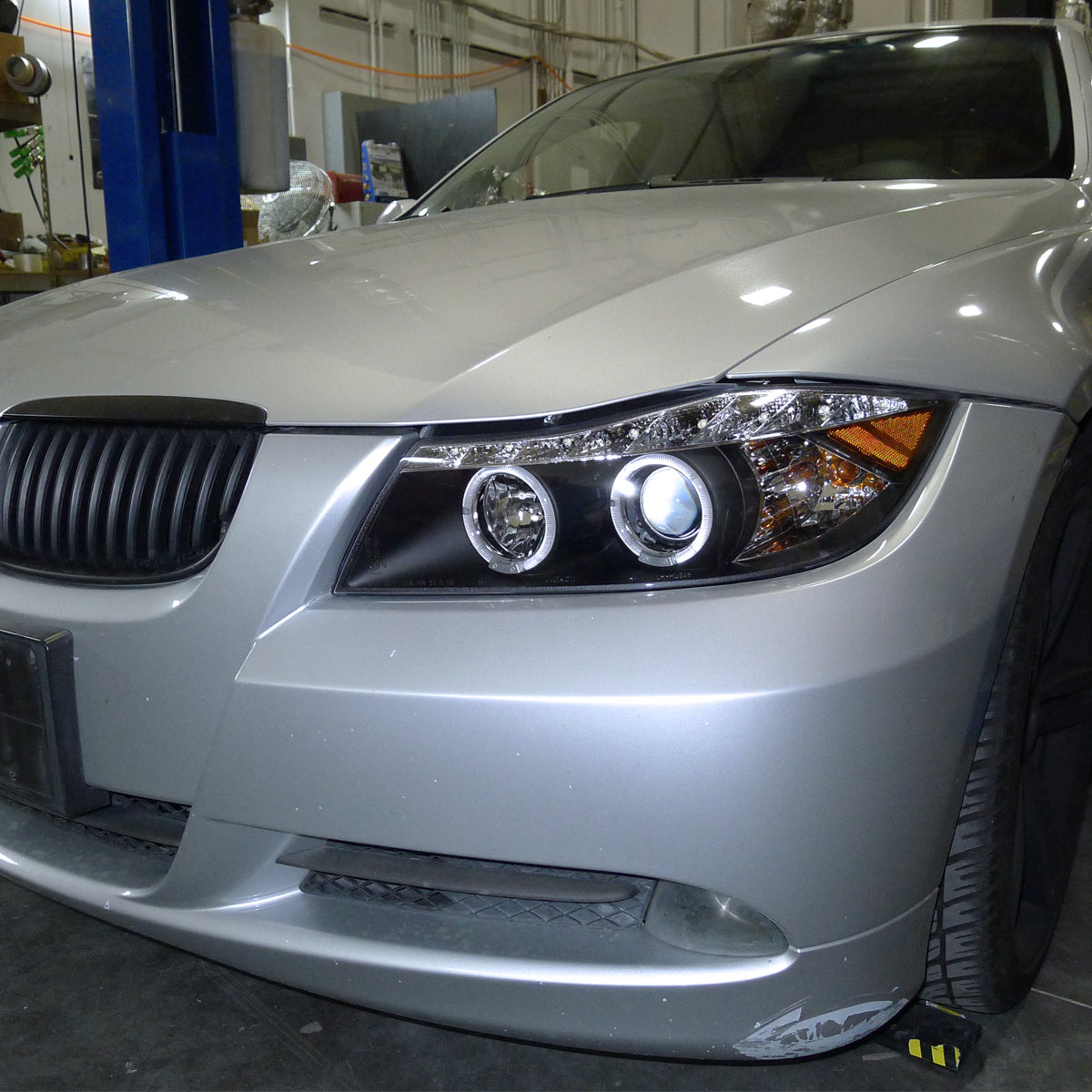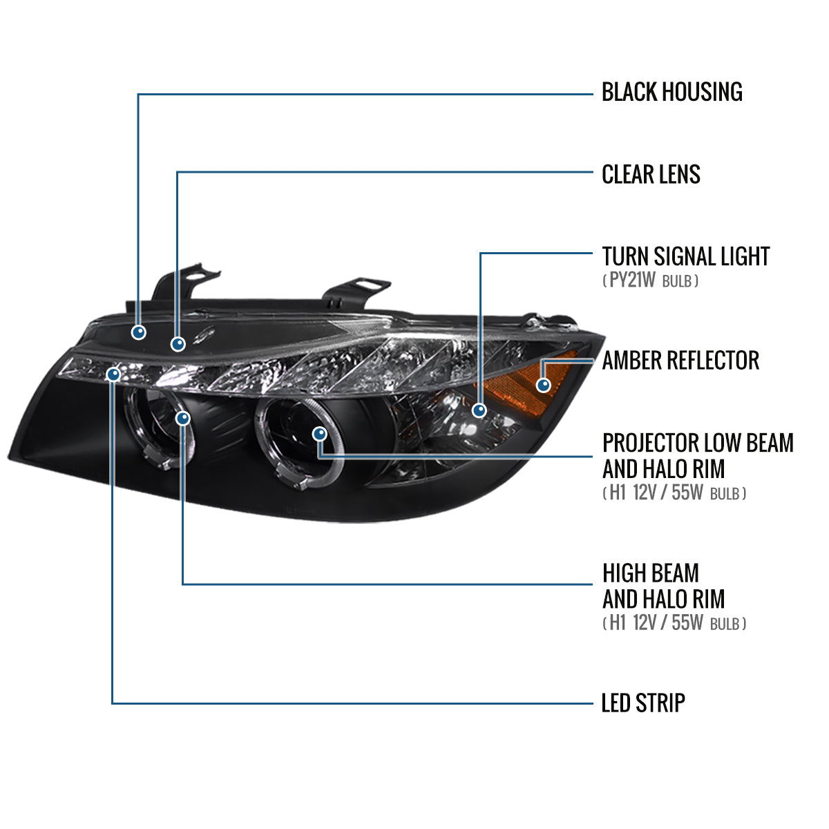 Ronnin - Fits 2006-2008 BMW 3-Series E90 325i 328i 330i E91 Wagon LED Angel Eyes Driving Lights Halogen Projector Headlights Assembly Pair | Black