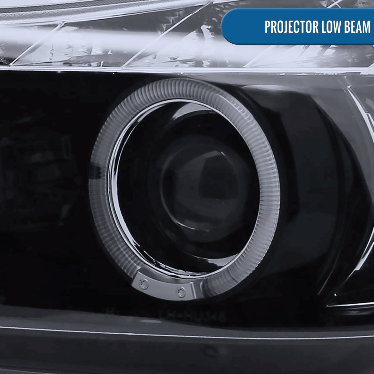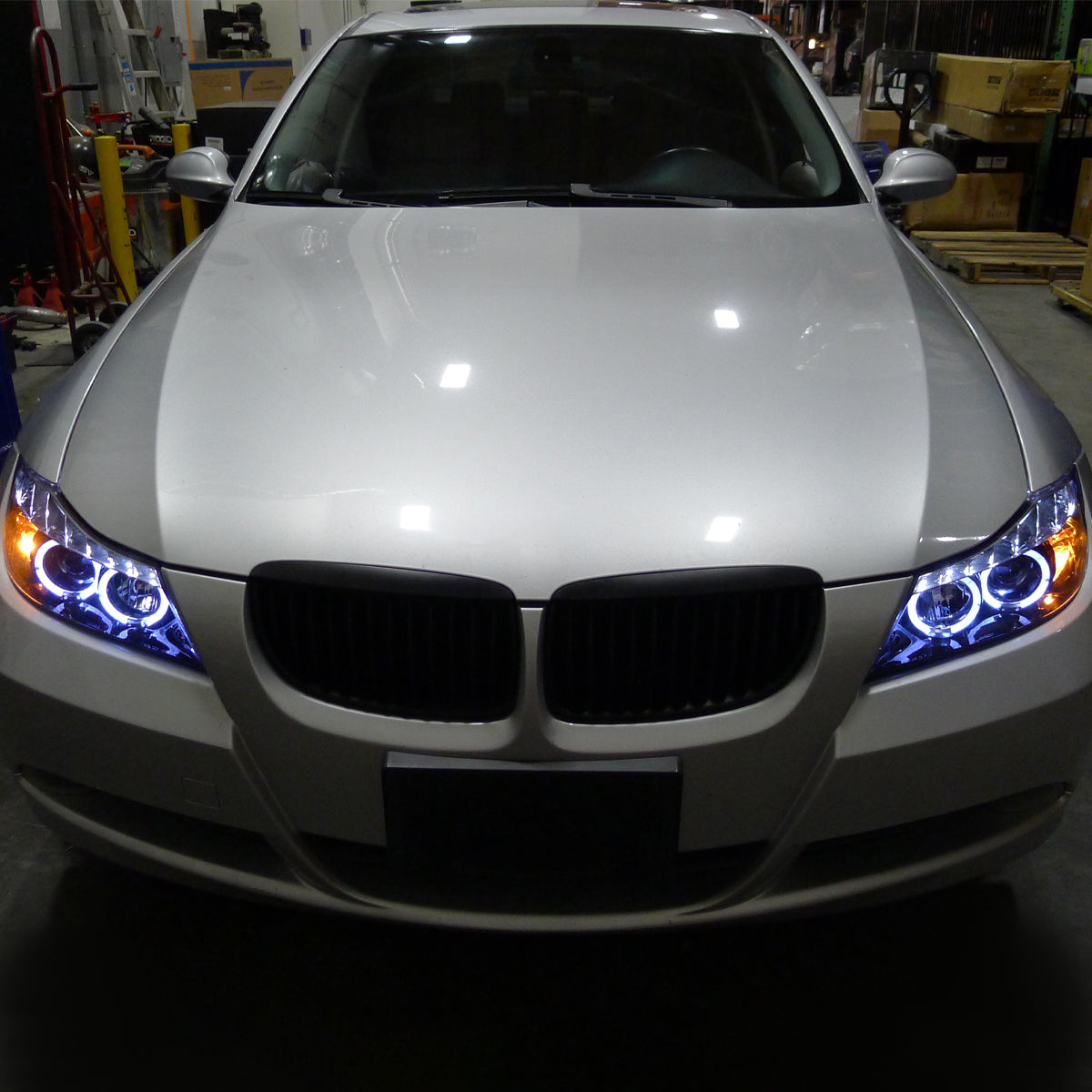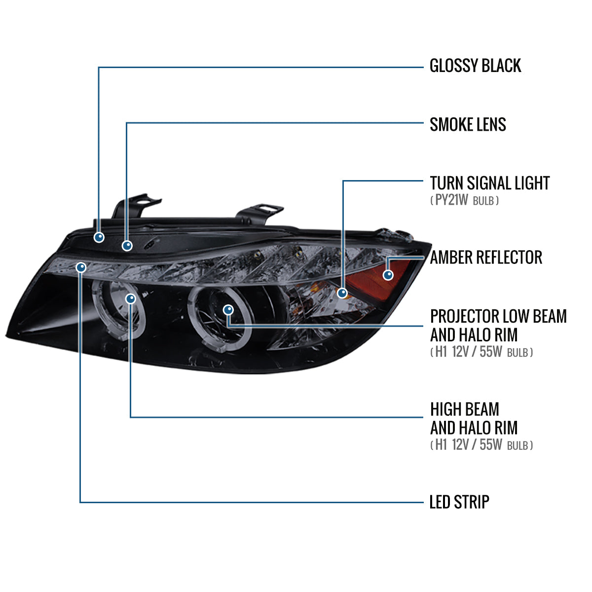 Ronnin - Fits 2006-2008 BMW 3-Series E90 325i 328i 330i E91 Wagon LED Angel Eyes Driving Lights Halogen Projector Headlights Assembly Pair | Black Smoke