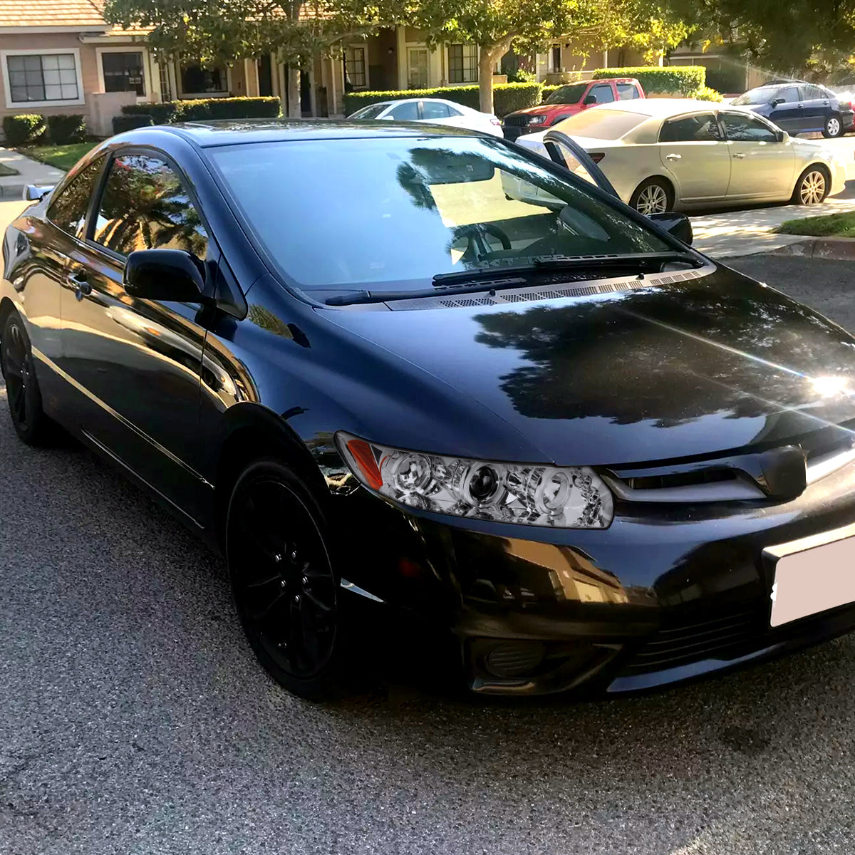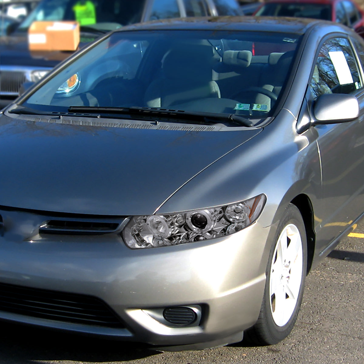 Ronnin - Fits 2006-2011 Honda Civic 2Dr Coupe LED Angel Eyes Dual Halo Rims Projector Headlights Replacement Pair | Chrome