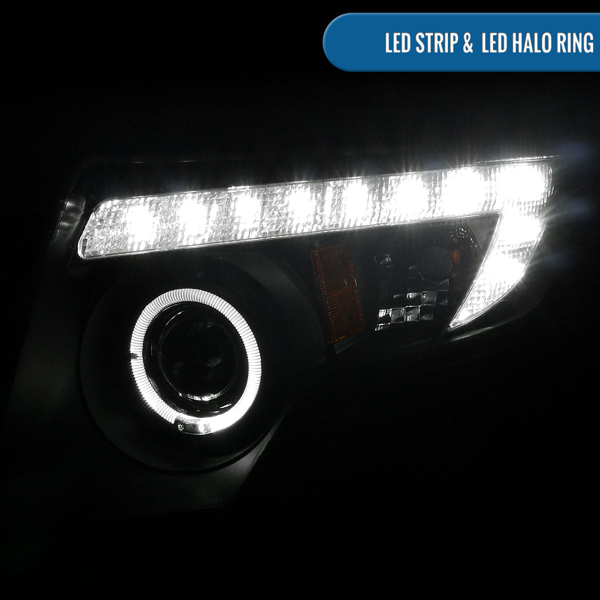 Ronnin - Fits 2007-2010 Ford Edge Upgraded Replacement LED Halo Rim Halogen Projector Headlights Assembly Pair | Black