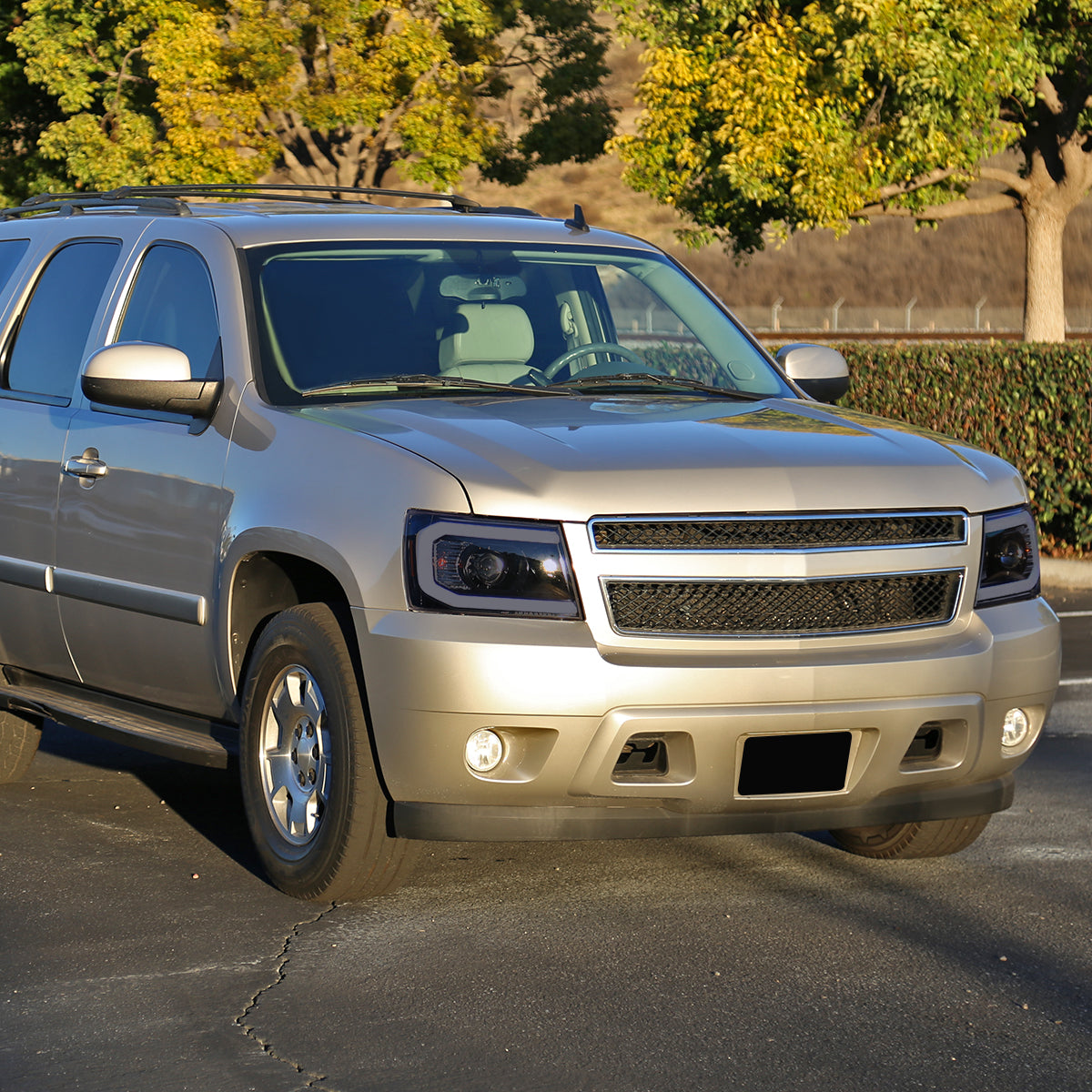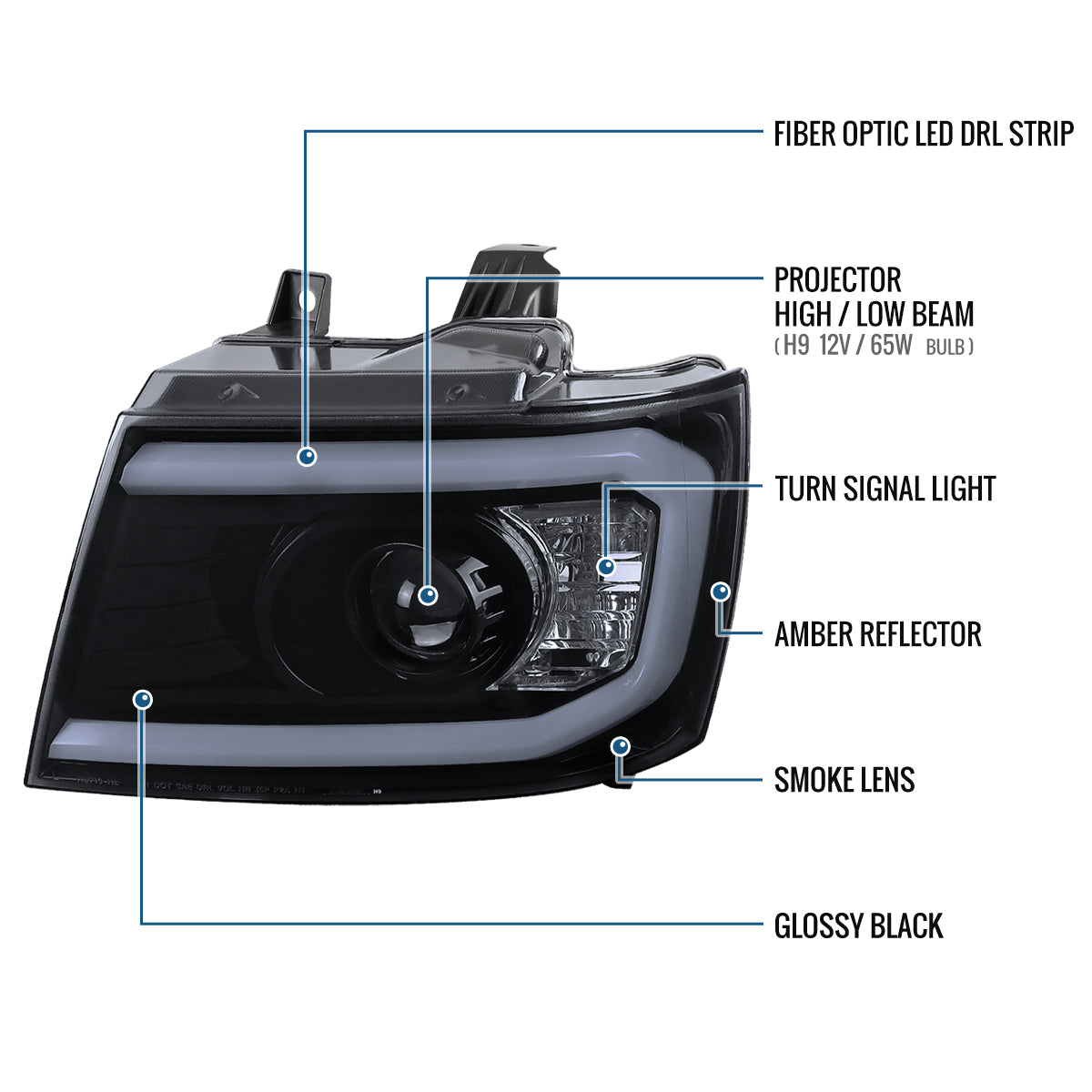 Ronnin - Fits 2007-2013 Chevy Avalanche 2007-2014 Tahoe Suburban 1500 2500 Upgraded Replacement Projector Headlights LED Tube Driving Lights Assembly Pair | Black Smoke