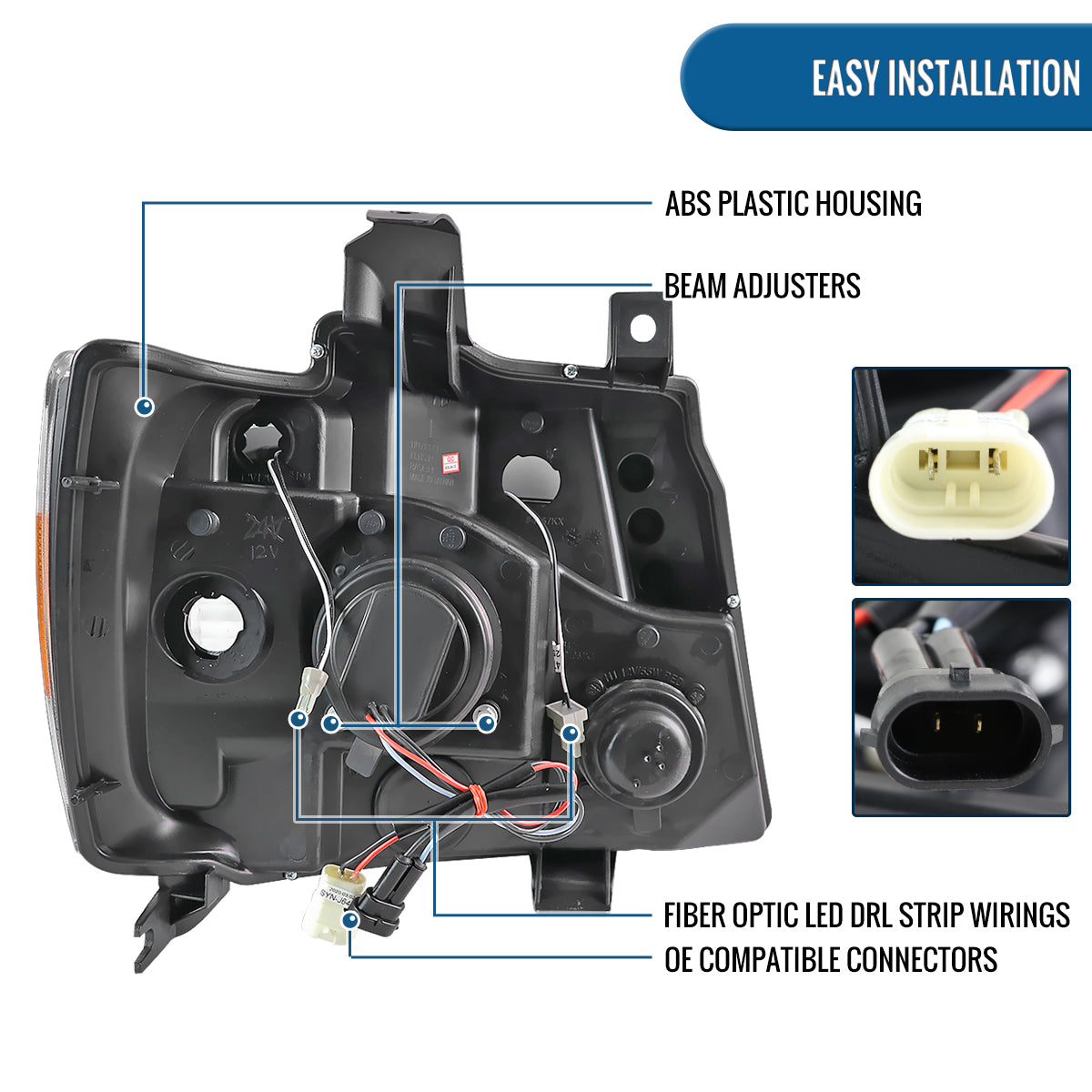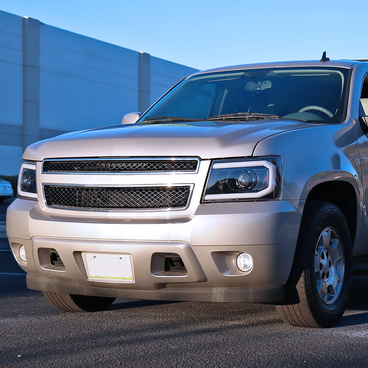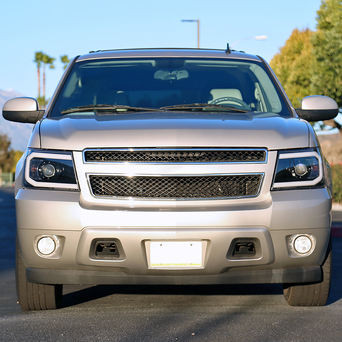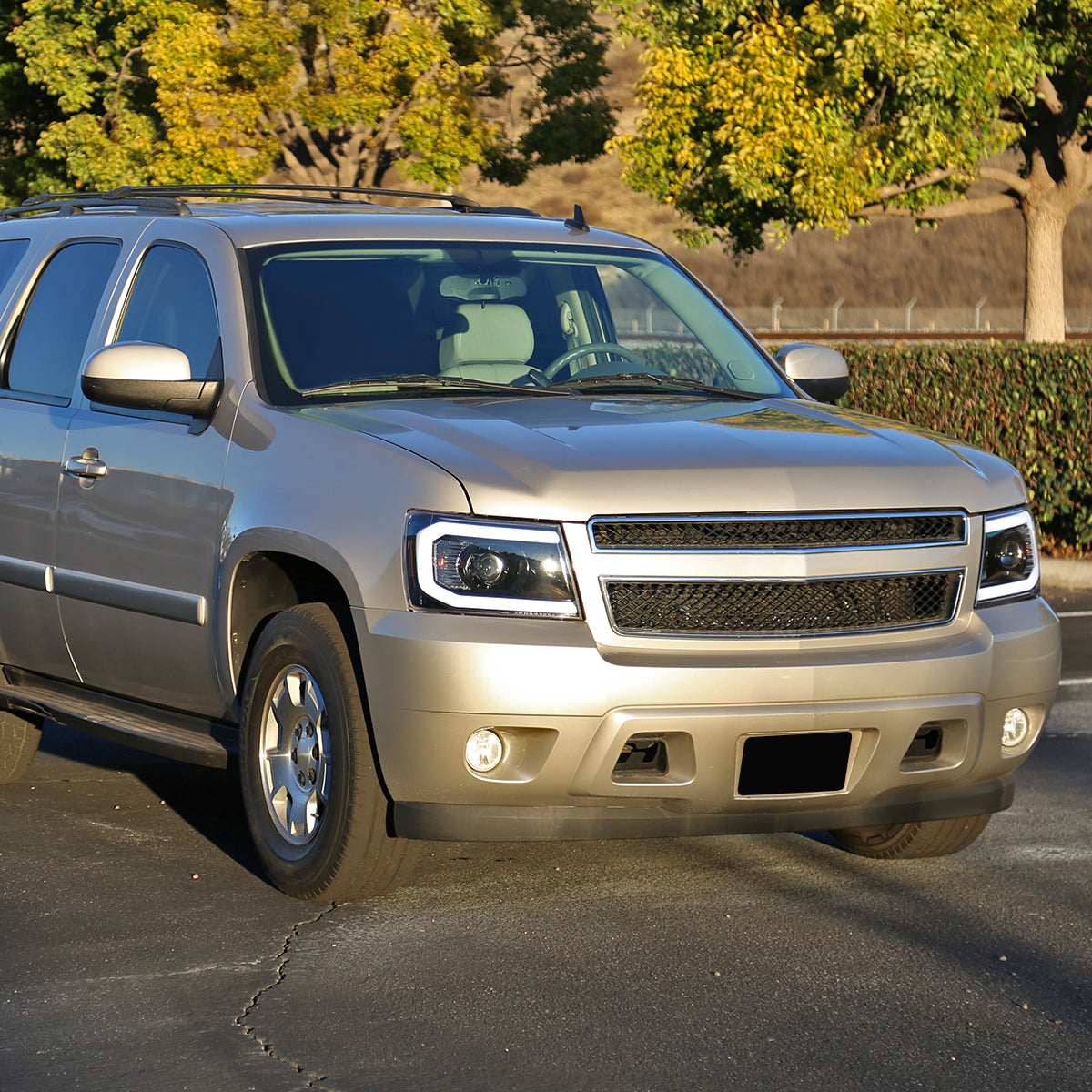 Ronnin - Fits 2007-2013 Chevy Avalanche 2007-2014 Tahoe Suburban 1500 2500 Upgraded Replacement Projector Headlights LED Tube Driving Lights Assembly Pair | Gloss Black