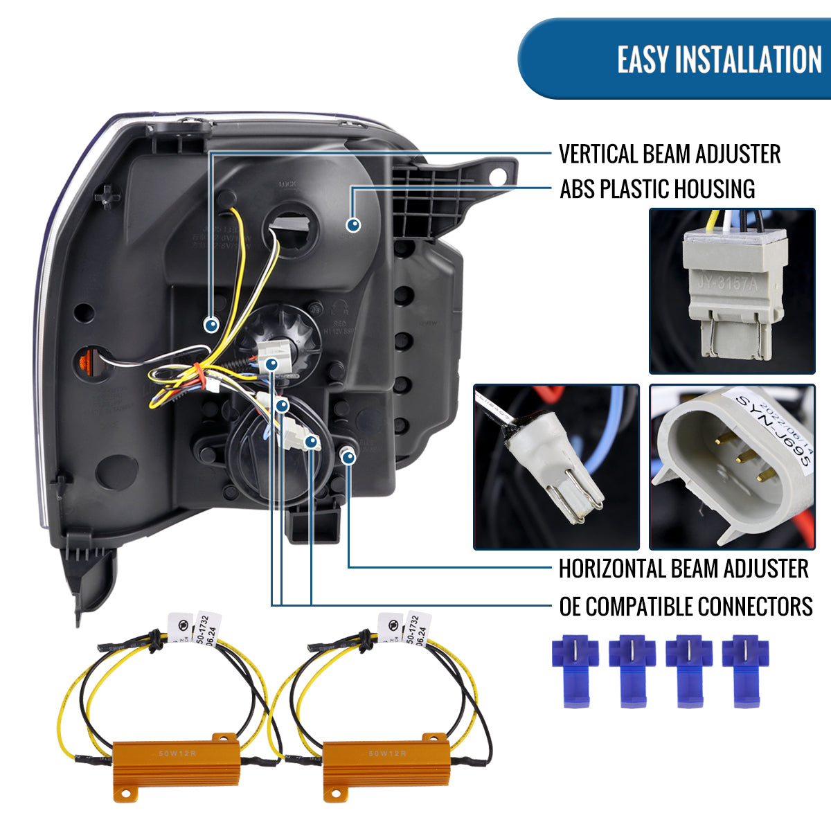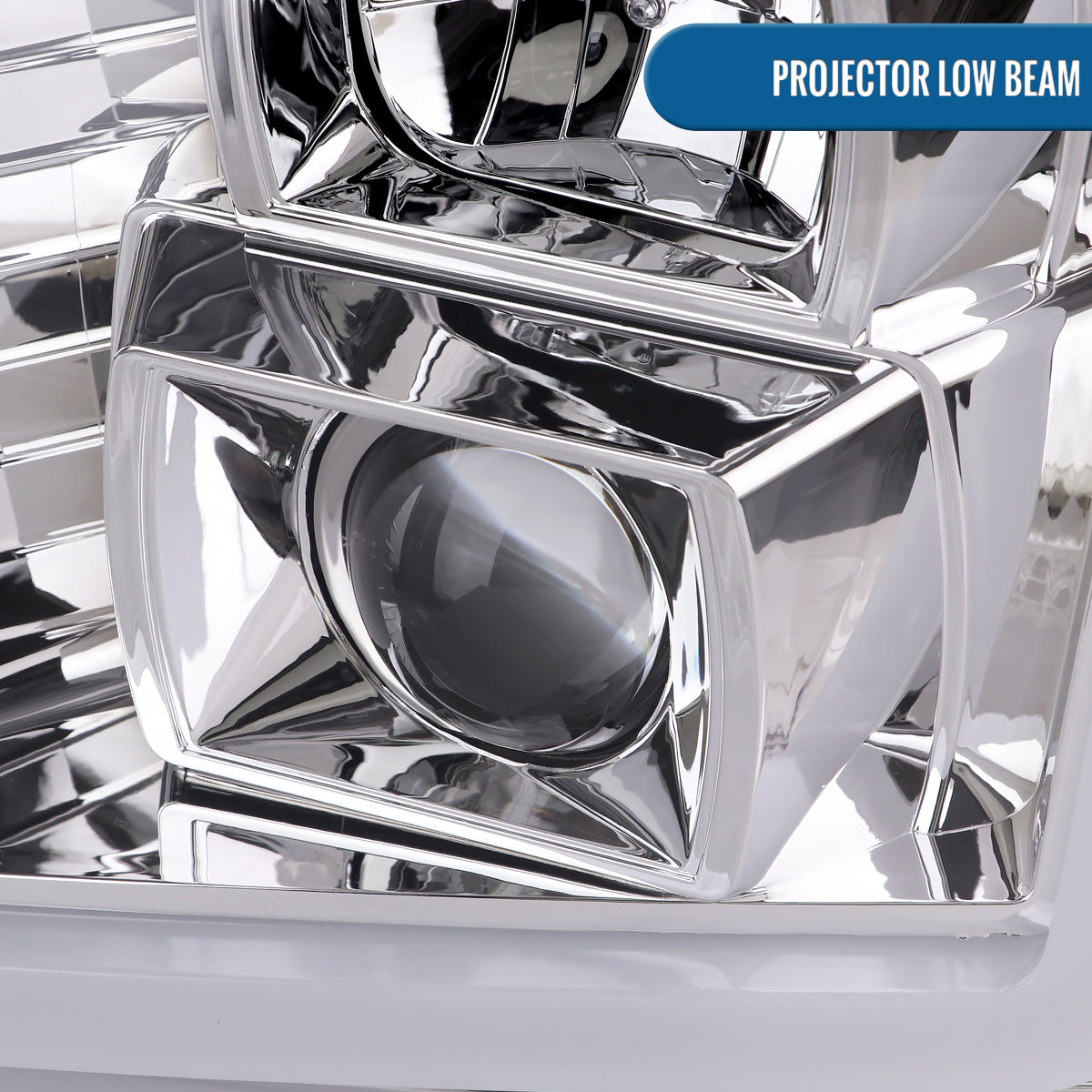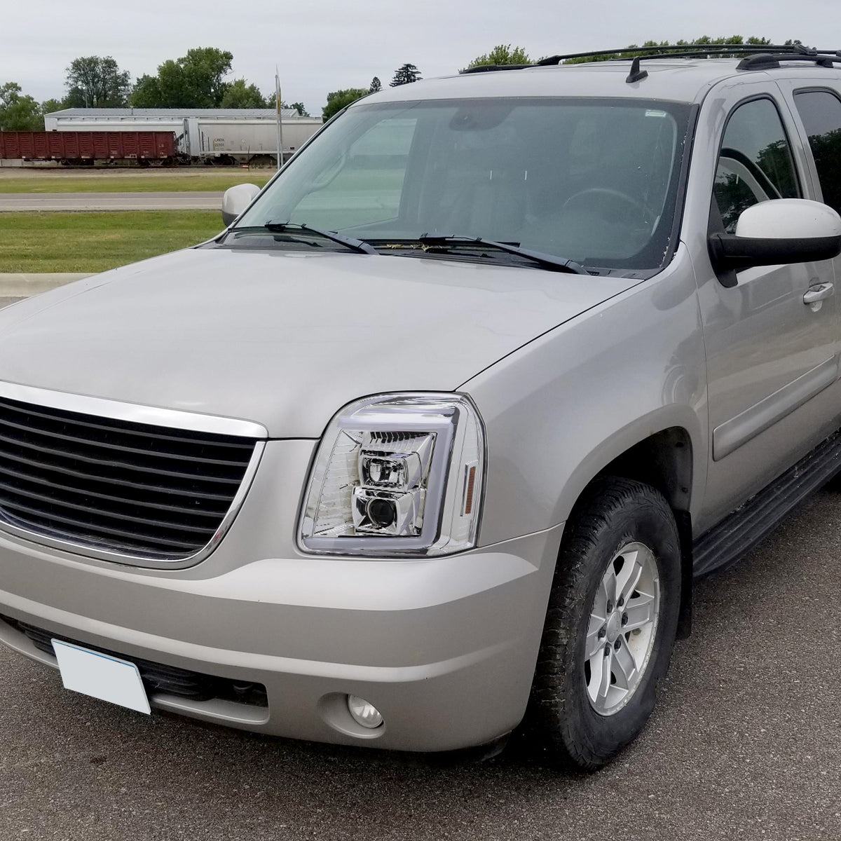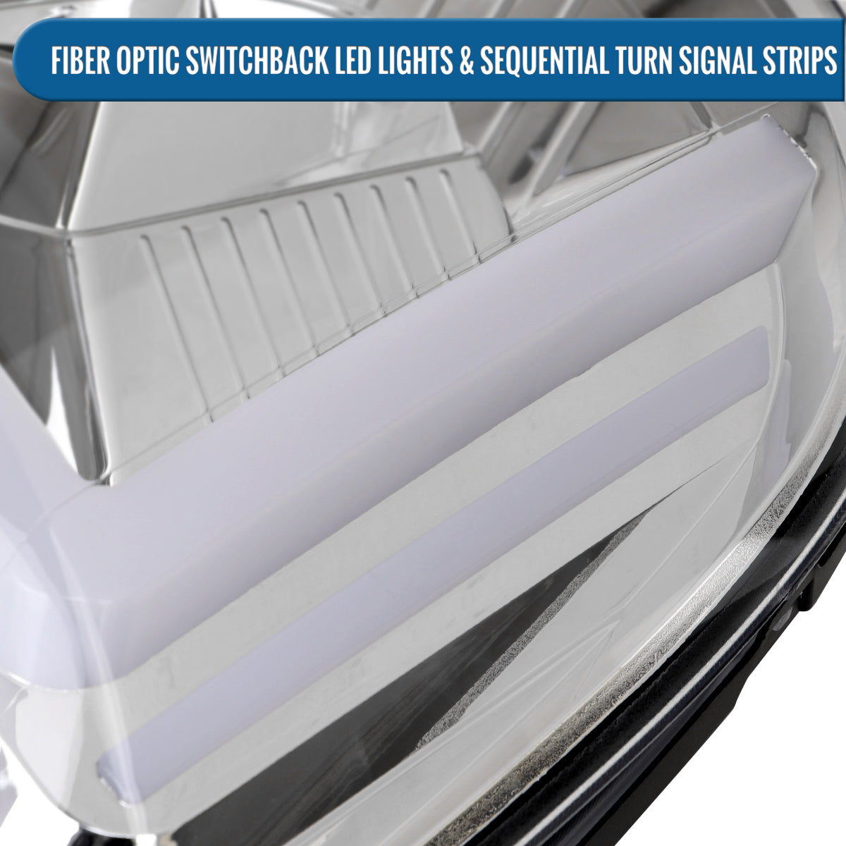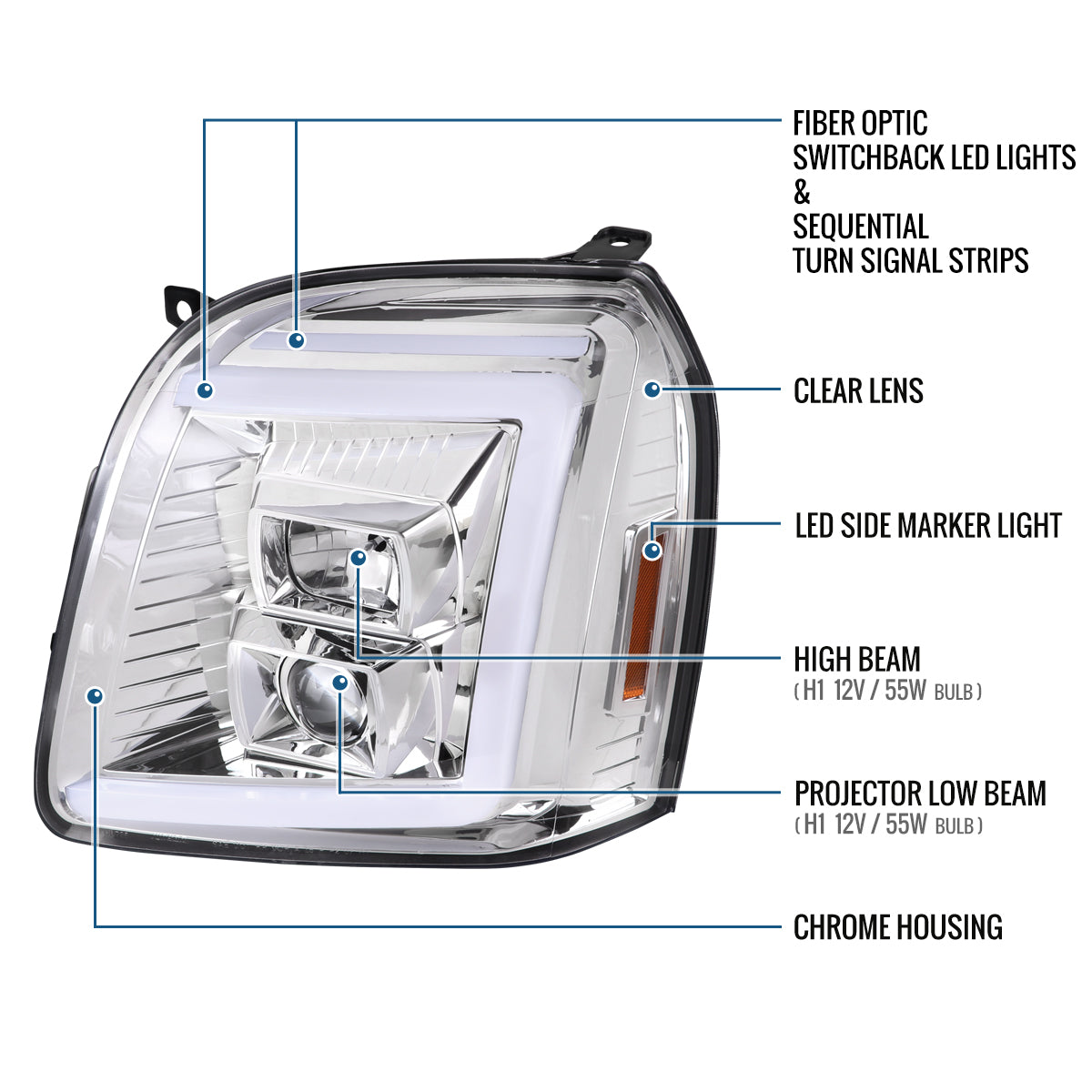 Ronnin - Fits 2007-2014 GMC Yukon XL 1500 2500 Upgraded LED Tube Switchback Sequential Turn Signal Projector Headlights Assembly Pair | Chrome