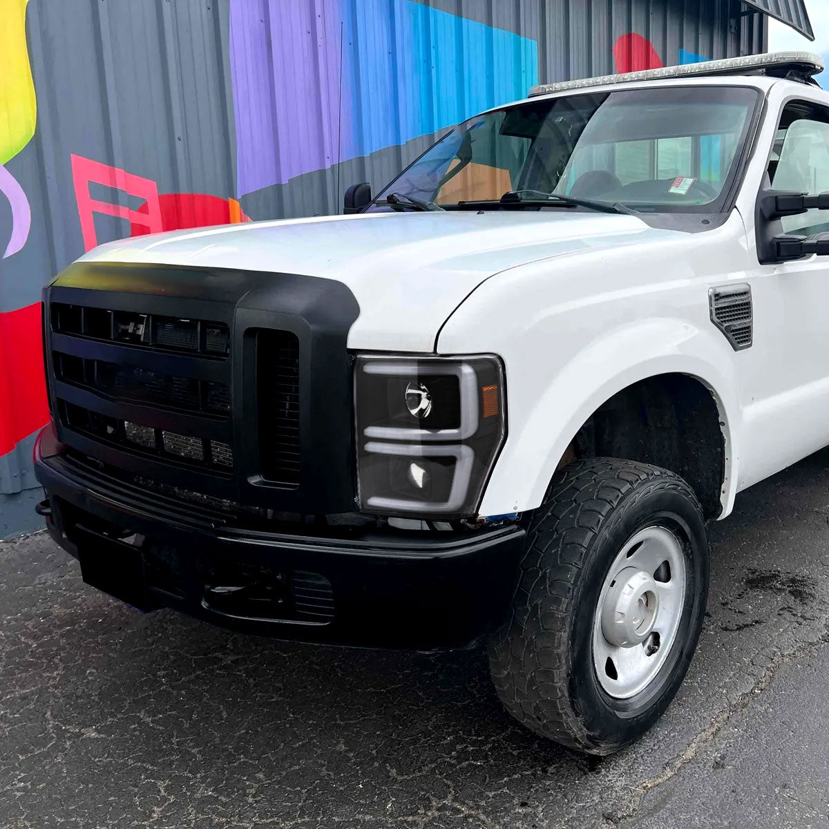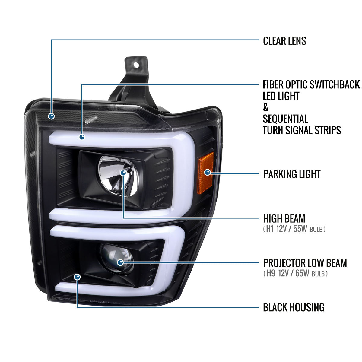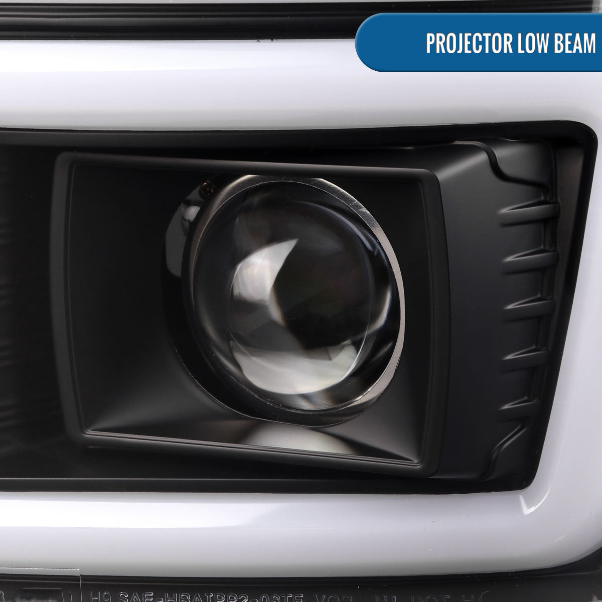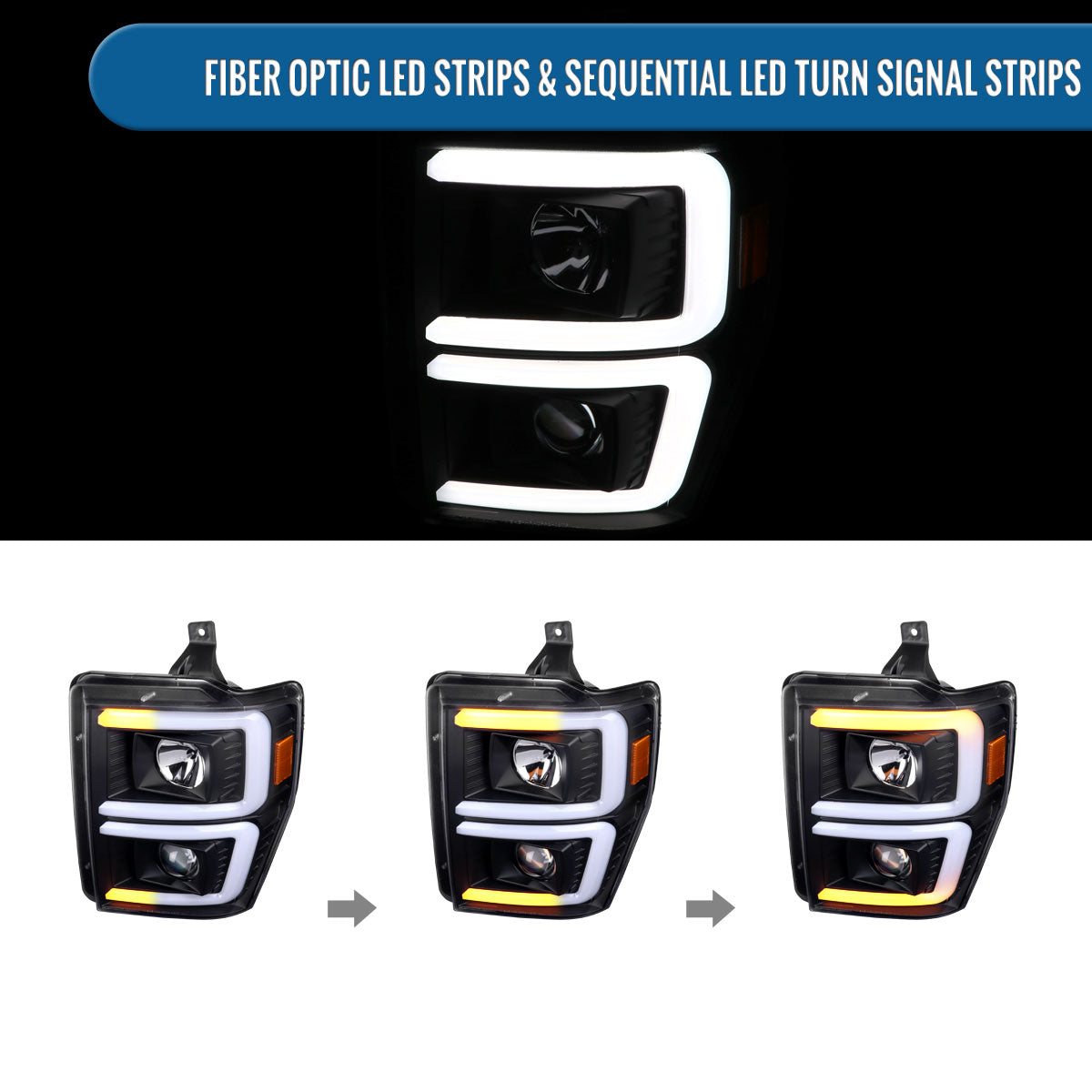 Ronnin - Fits 2008-2010 Ford F250 F350 F450 F550 Super Duty Upgraded LED Tube Switchback Sequential Turn Signals Projector Headlights Assembly Pair | Black