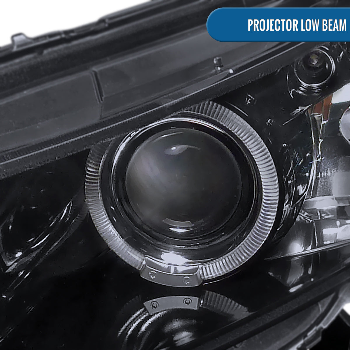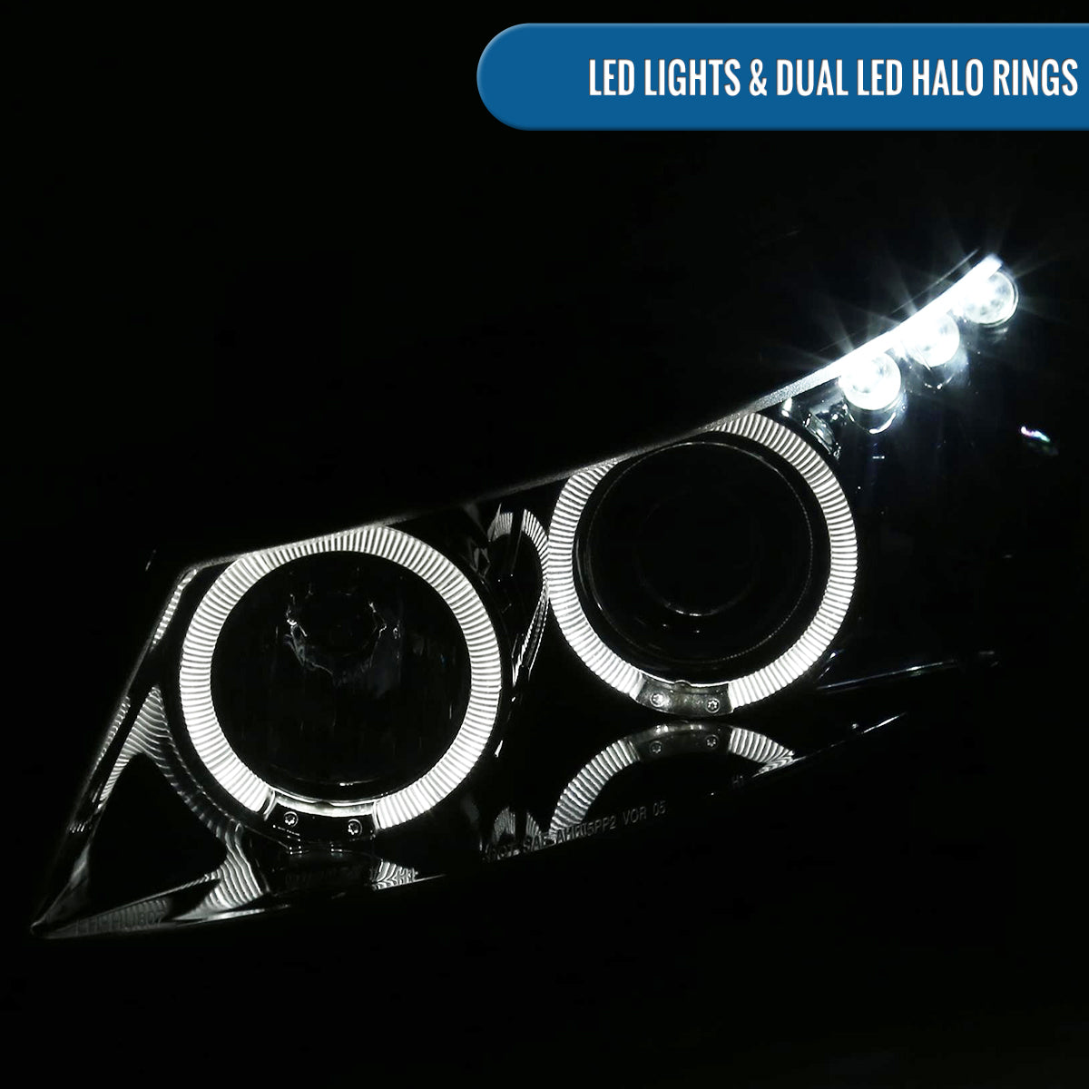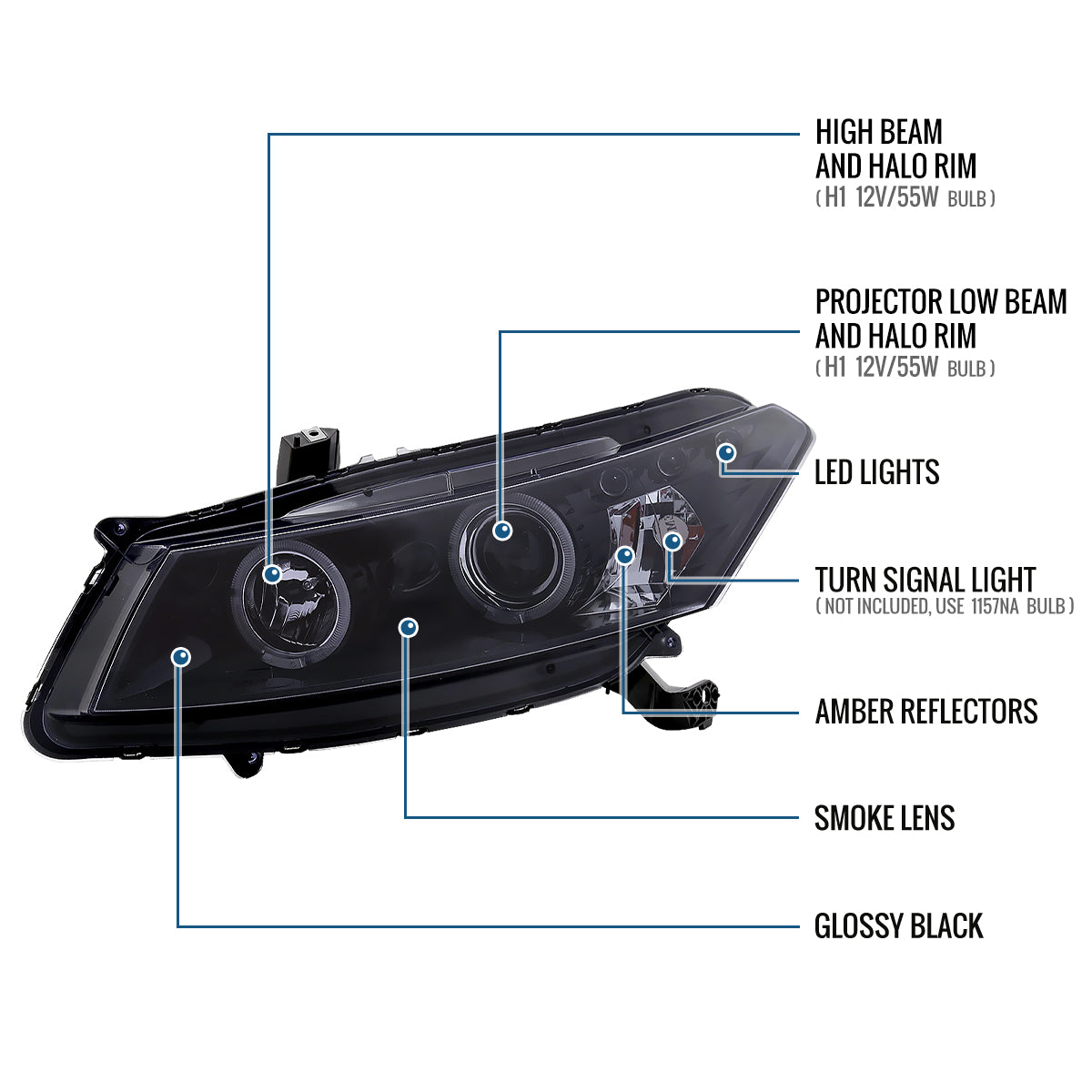 Ronnin - Fits 2008-2012 Honda Accord 2Dr Coupe LED Dual Halo Rims Running Lights Projector Headlights Assembly Pair | Black Smoke
