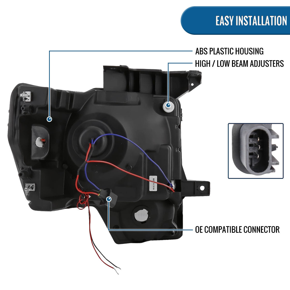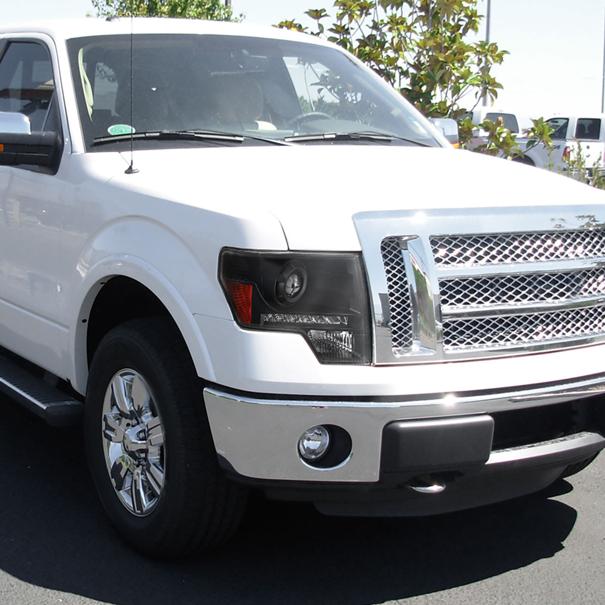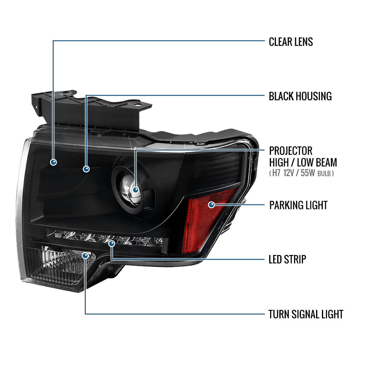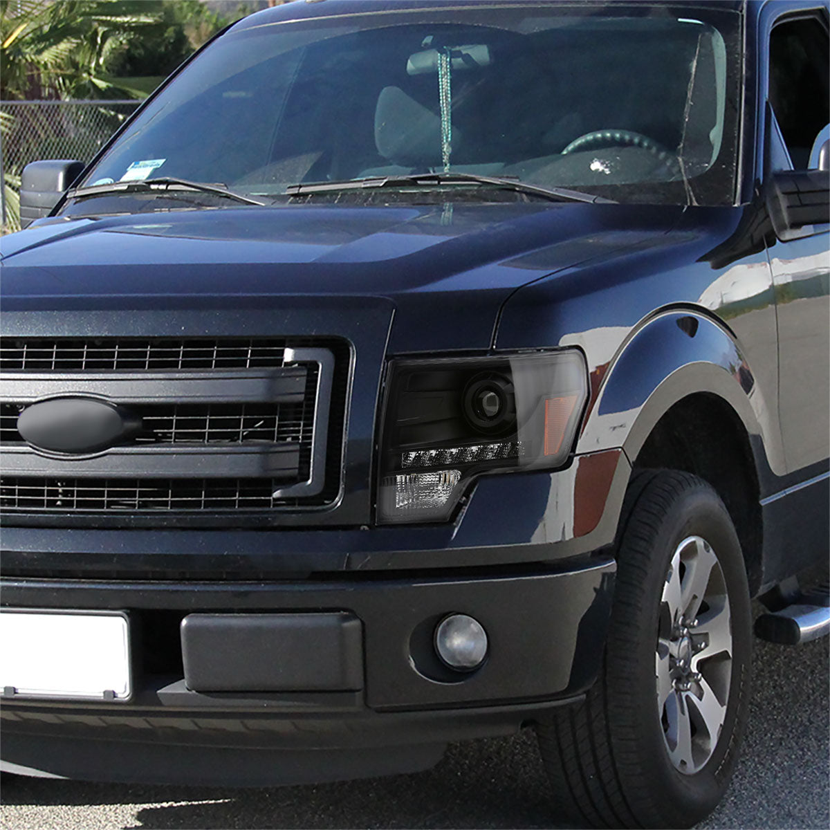 Ronnin - Fits 2009-2014 Ford F150 Pickup Truck Retro Style Replacement LED Running Lights Projector Halogen Headlights Assembly Pair | Black