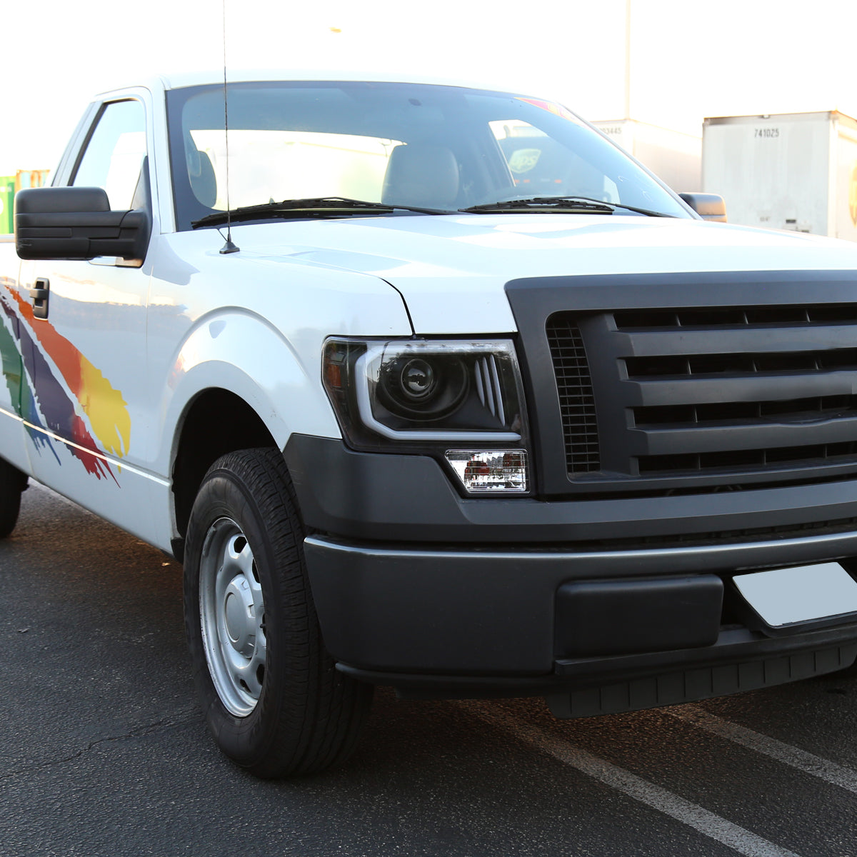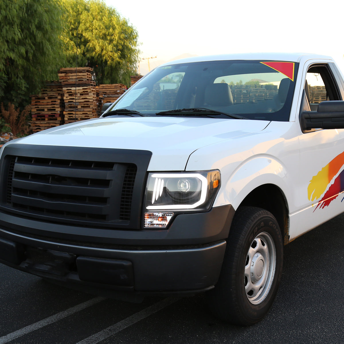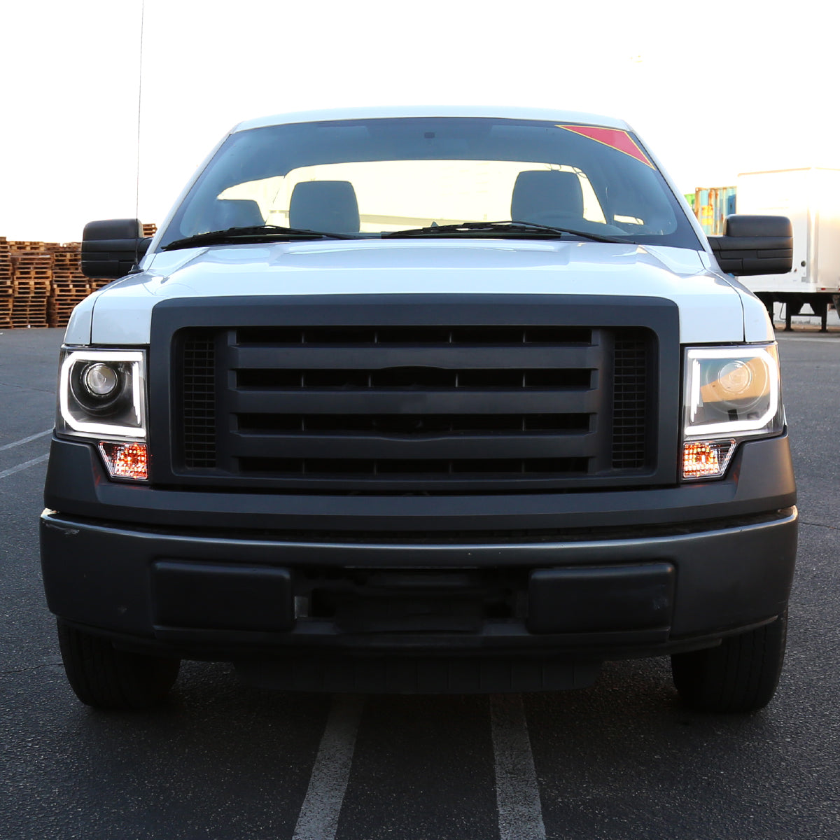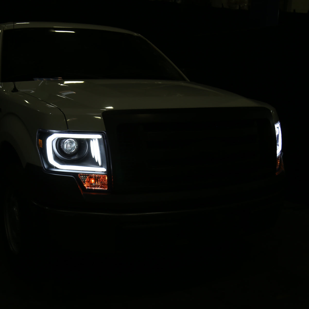Ronnin - Fits 2009-2014 Ford F150 Pickup Truck Upgraded Replacement LED Tubes Projector Halogen Headlights Assembly Pair | Black