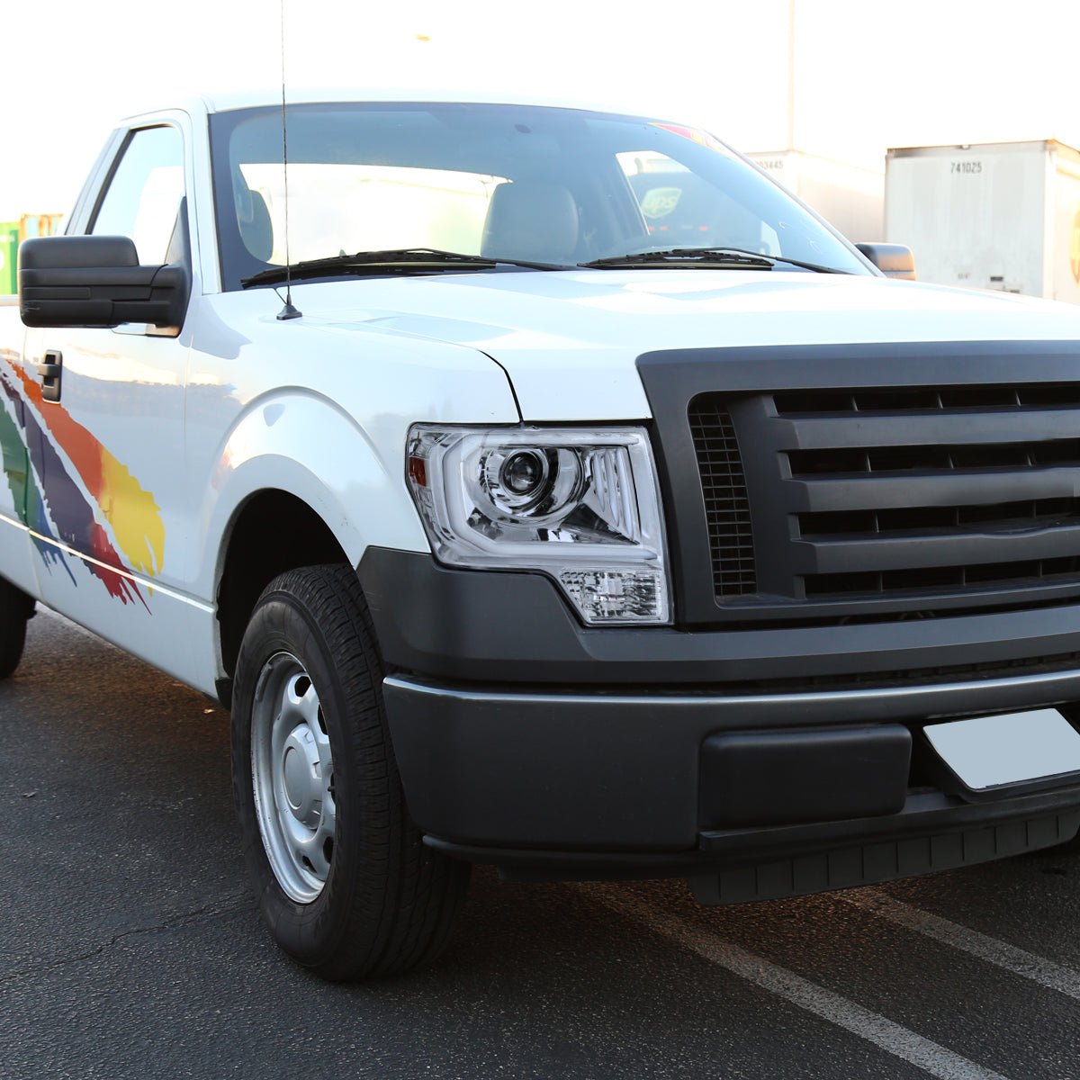 Ronnin - Fits 2009-2014 Ford F150 Pickup Truck Upgraded Replacement LED Tubes Projector Halogen Headlights Assembly Pair | Chrome