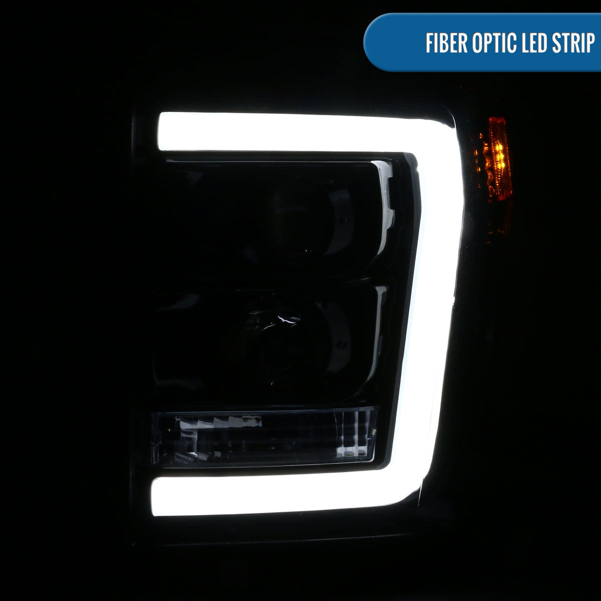 Ronnin - Fits 2011-2016 Ford F250 F350 F450 F550 Super Duty Upgraded Replacement LED Running Lights Projector Headlights Assembly Pair | Black Smoke