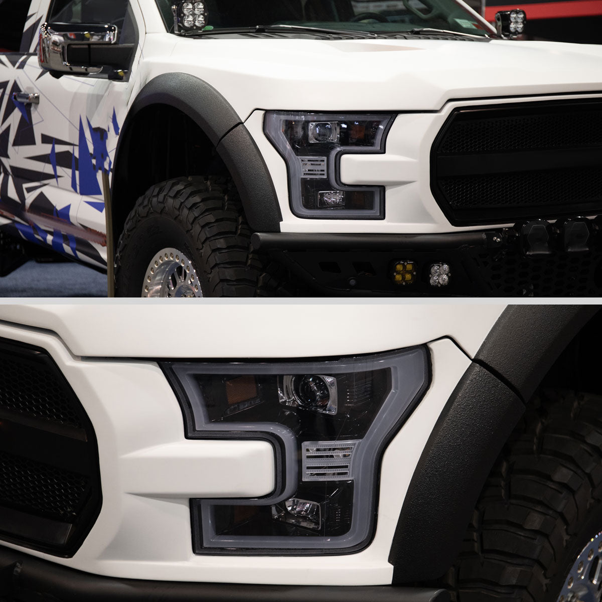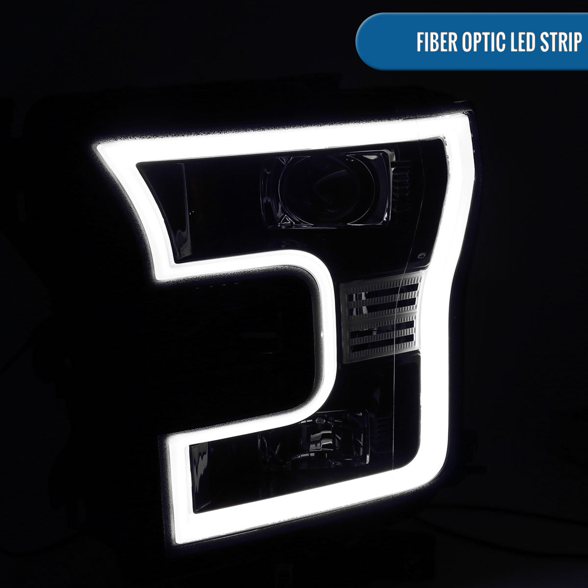 Ronnin - Fits 2015-2017 Ford F150 Upgraded Replacement LED Projector Headlights Assembly Pair | Black Smoke