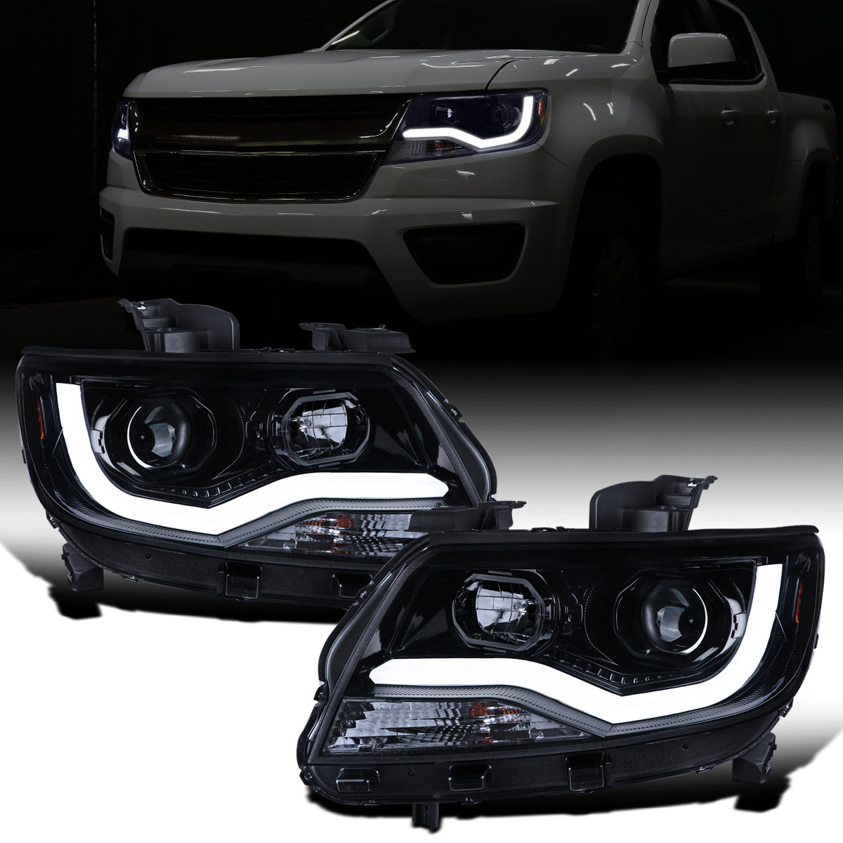 Ronnin - Fits 2015-2022 Chevy Colorado Upgraded Replacement Halogen Projector Headlights LED Tube Driving Lights Assembly Pair | Black Smoke