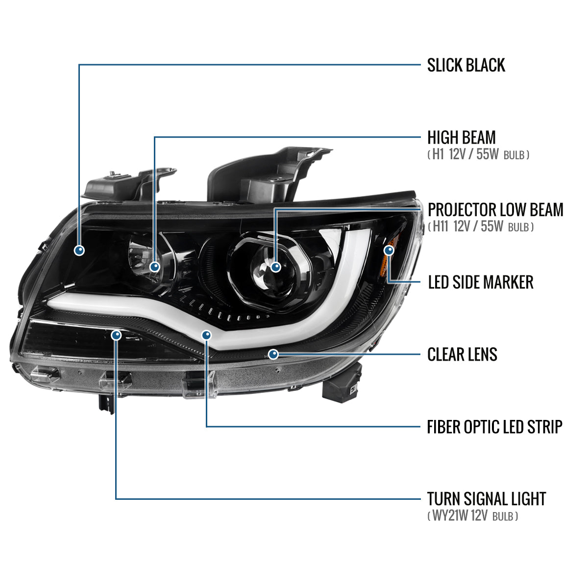 Ronnin - Fits 2015-2022 Chevy Colorado Upgraded Replacement Halogen Projector Headlights LED Tube Driving Lights Assembly Pair | Gloss Black