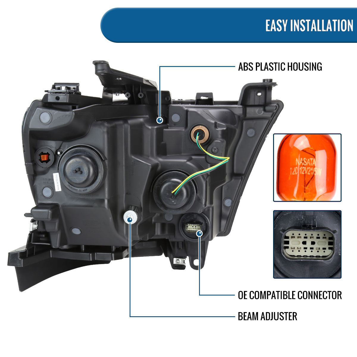Ronnin - Fits 2019-2024 Ram 1500 Factory Replacement Halogen Headlights Assembly Pair | Smoke