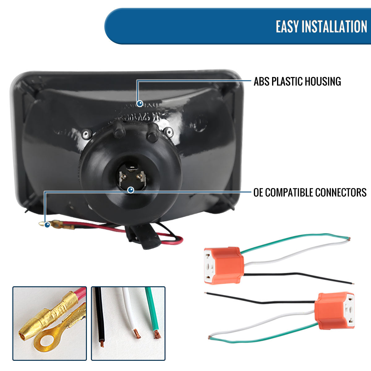 Ronnin - Fits All Vehicles with 4" X 6" Sealed Beam Projector Headlights H4651 H4652 H4656 H4666 H6545 Pair | Black
