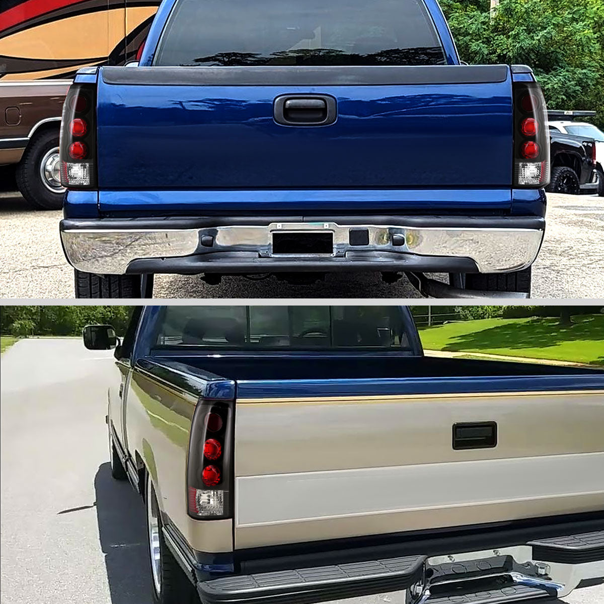 Ronnin - Fits 1999-2002 Chevy Silverado 1999-2007 Sierra Pickup Tail Lights Replacement Rear Brake Lamps Assembly Pair | Black