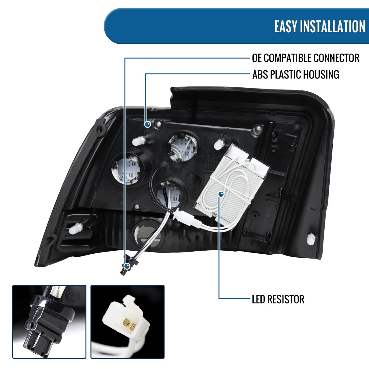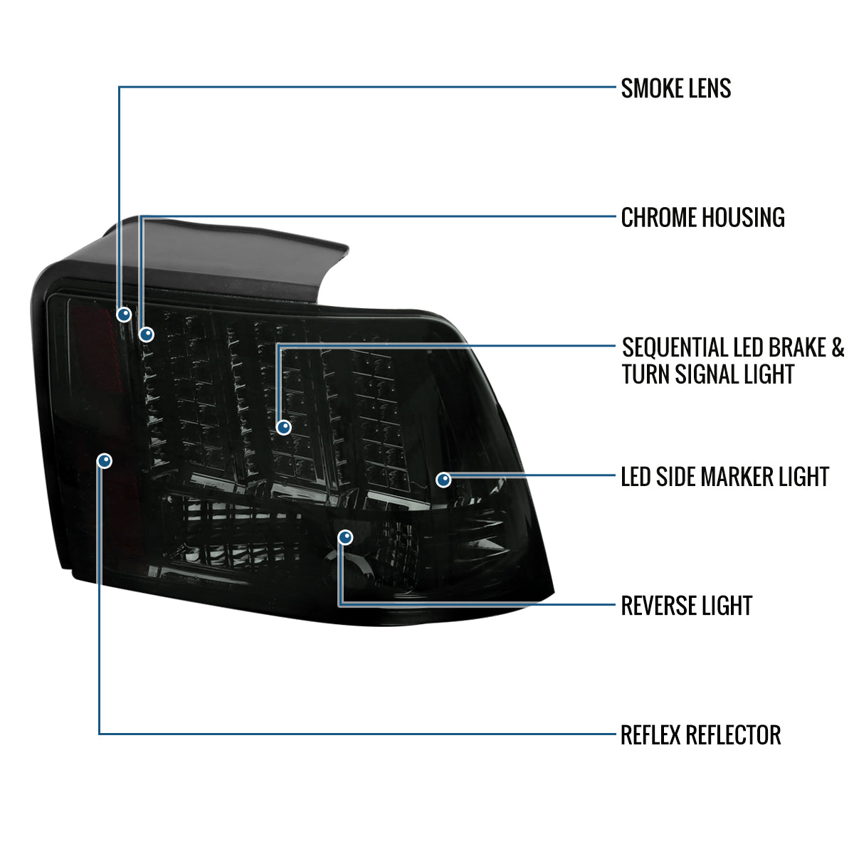 Ronnin - Fits 1999-2004 Ford Mustang Upgraded LED Sequential Turn Signals Tail Lights Assembly Pair | Smoke