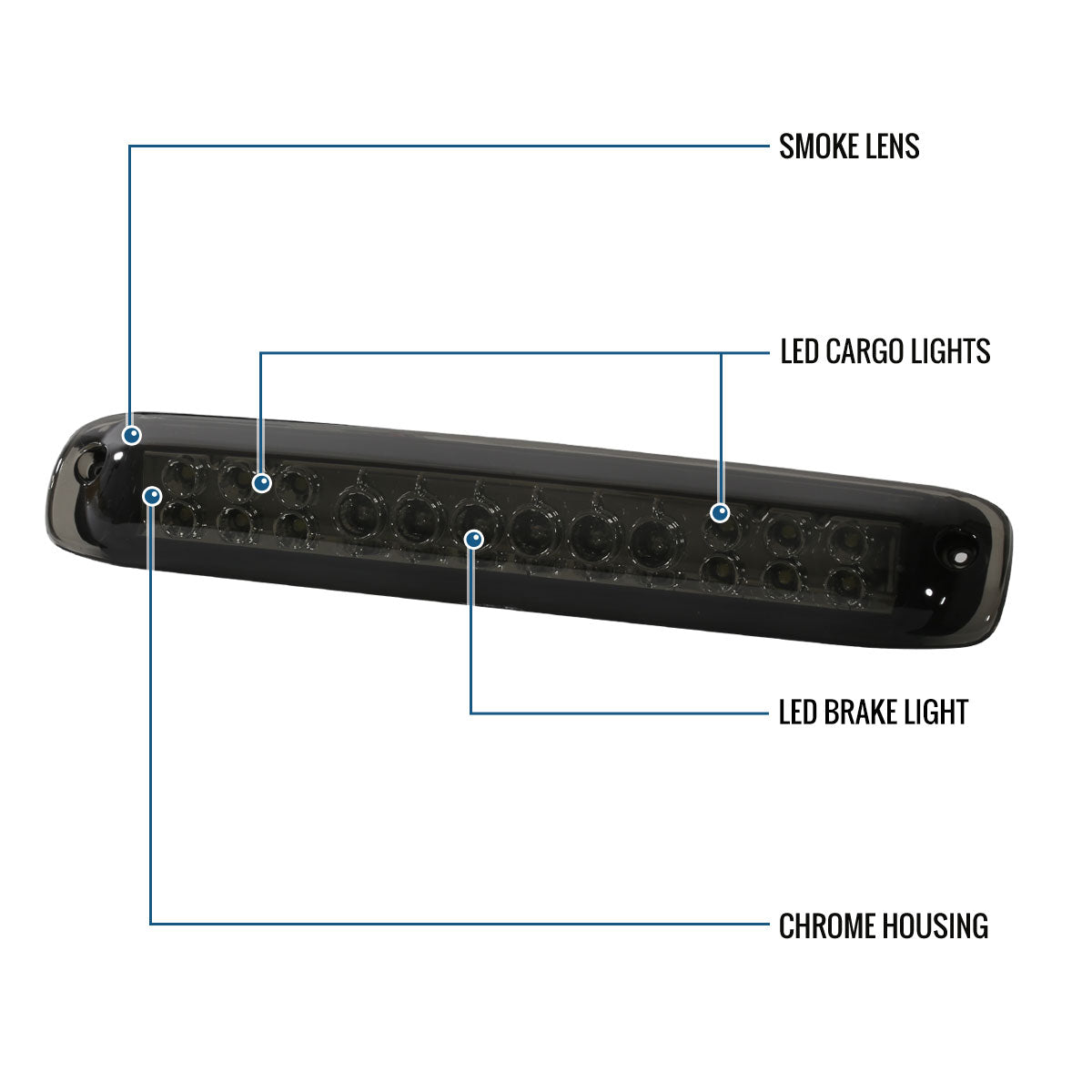 Ronnin - Fits 1999-2006 Chevy Silverado GMC Sierra 1500 2500HD 3500 LED Center High Mount Stop Lamp 3rd Third Brake Light Assembly Piece | Smoke