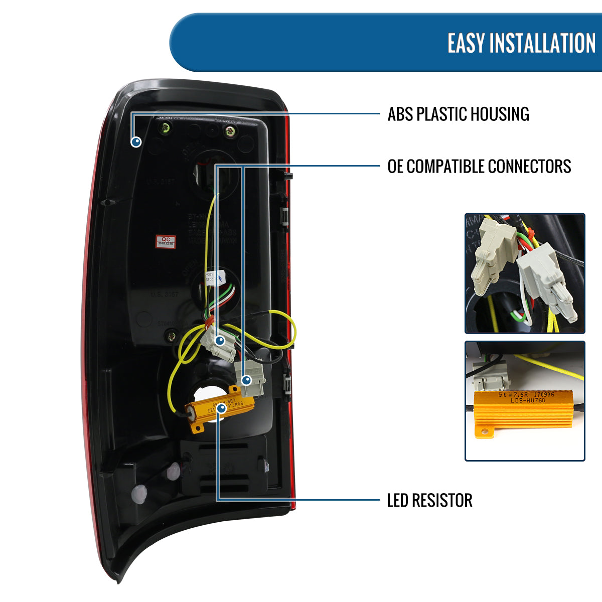 Ronnin - Fits 2000-2006 Suburban Tahoe Yukon Denali XL LED Integrated Brake and Turn Signal Lamps Tail Lights Assembly Pair | Red