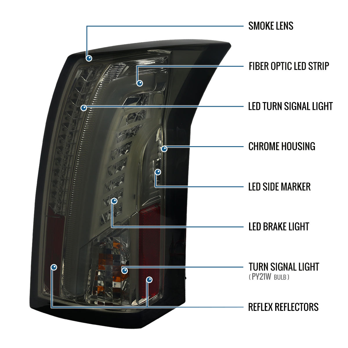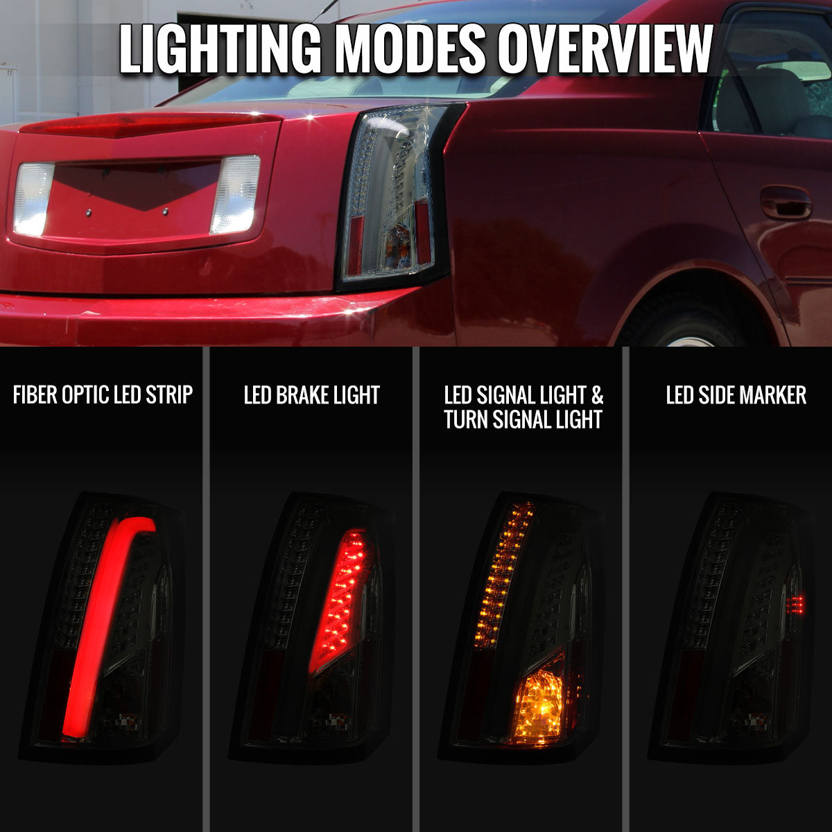 Ronnin - Fits 2003-2007 Cadillac CTS Upgrade Replacement LED Tail Lights Assembly Pair | Smoke